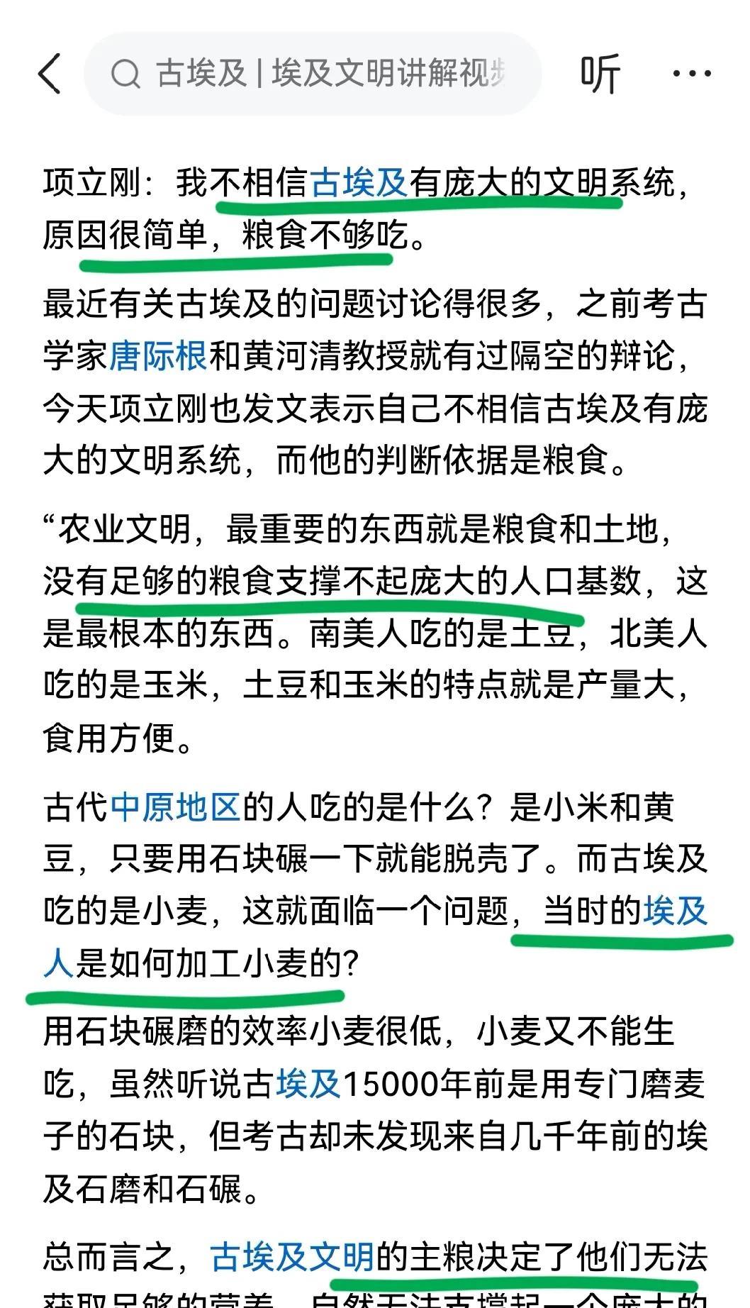 著名通信专家项立刚因为埃及小麦产业的事又和网友争论起来了。项立刚认为,古埃及无法大量生产和加工小麦。 而有些网友认为,古埃及小麦产业相当发达。 你认为谁说的对? 项立刚质疑的地方在于,埃及从未发掘出有关小麦加工的作坊和工具,所以,凭什么说古埃及小麦产业发达? 另一个,古代小麦产出量太小,而且无法生吃,必须加工才能食用,这就决定了如果古埃及是以小麦为主粮,那就不可能支撑庞大的人口,更不可能产生大的文明体系,但奇怪的是,古埃及却从未发现过石磨和石碾。 石磨石碾这种东西,不可能随随便便就消失得无影无踪,连一个都找不到吧?