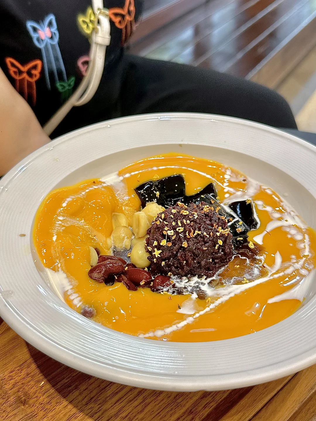 今天和小美 在老军营发现了一家神仙糖水铺! 我们点了招牌芒果绵绵冰 端上来的时候惊呆啦~🤒 新鲜芒果🥭堆成小山,每一块都超大超甜! 绵绵冰打得超级细腻 入口即化,奶香味十足~ 闺蜜点的芋泥白雪血糯米也超赞 偷吃了几口直接被圈粉! 店里是原木风装修,放着轻音乐🎵 我们边吃边聊不知不觉坐了一下午~ 人均才20+,比奶茶店划算多啦! 已经约好下周还要来 要把菜单都刷一遍!🐛
