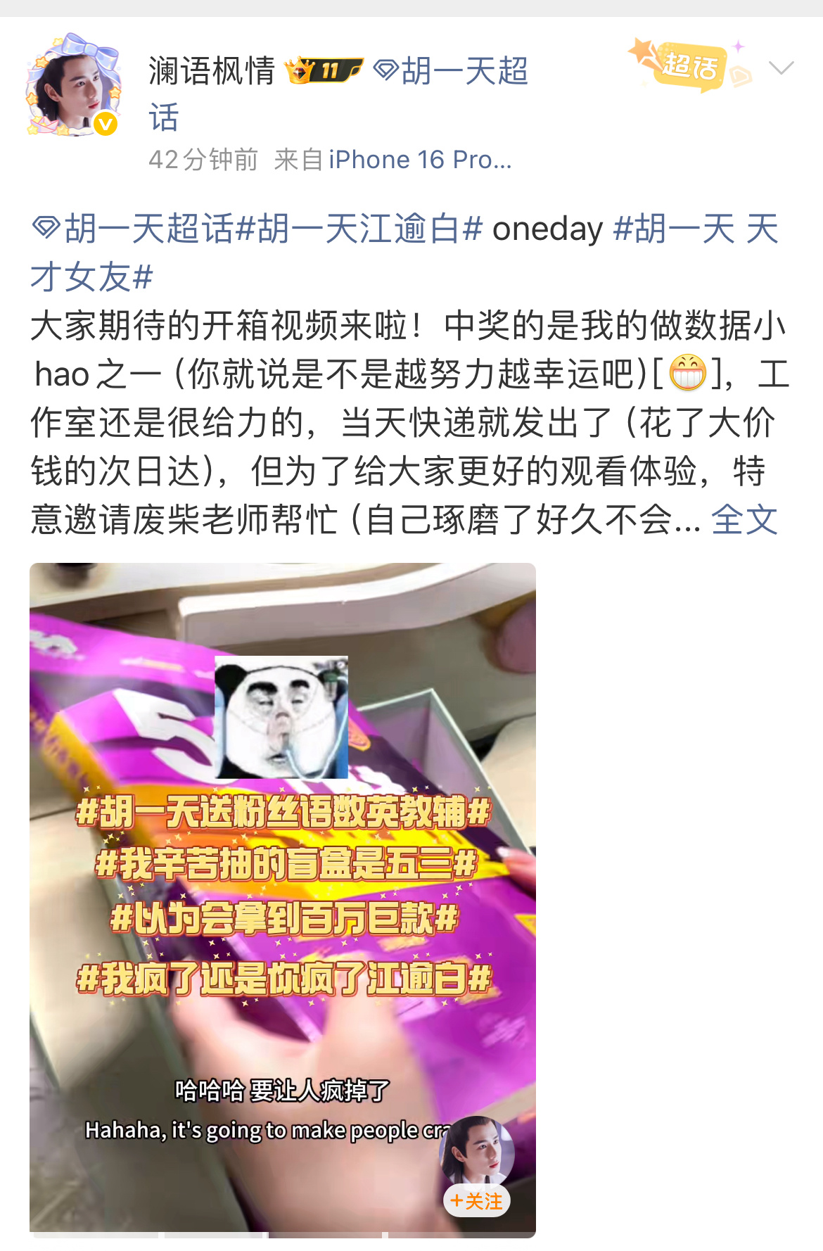 胡一天谁家好人送粉丝五三啊很符合江逾白人设的一集,粉丝用不上等孩子用