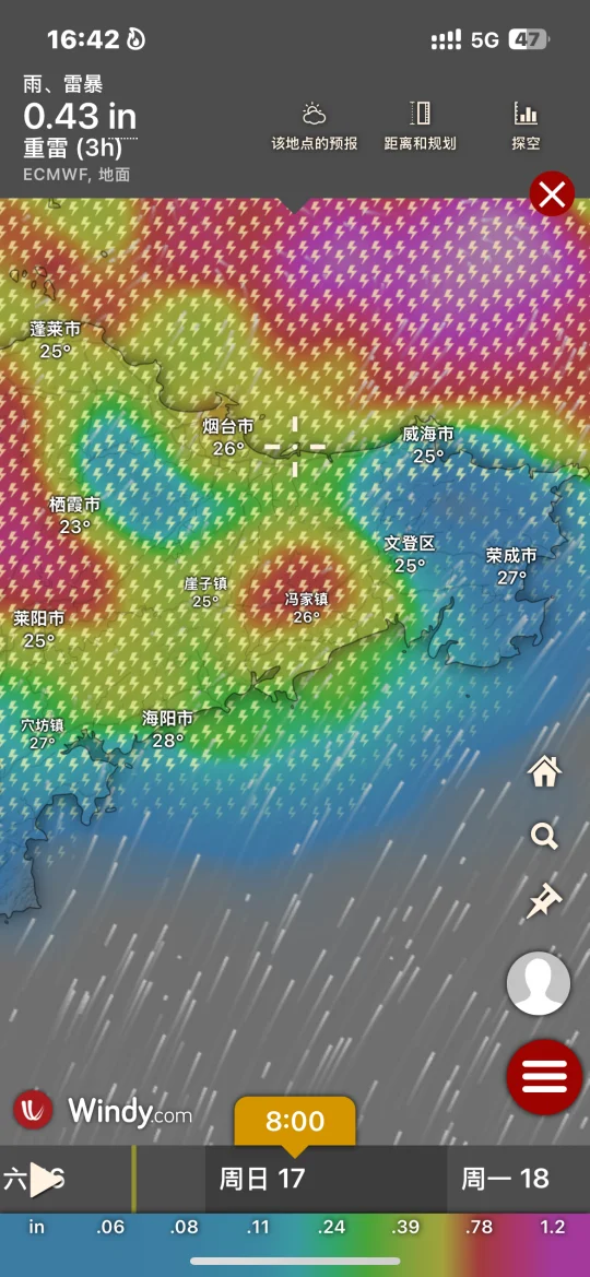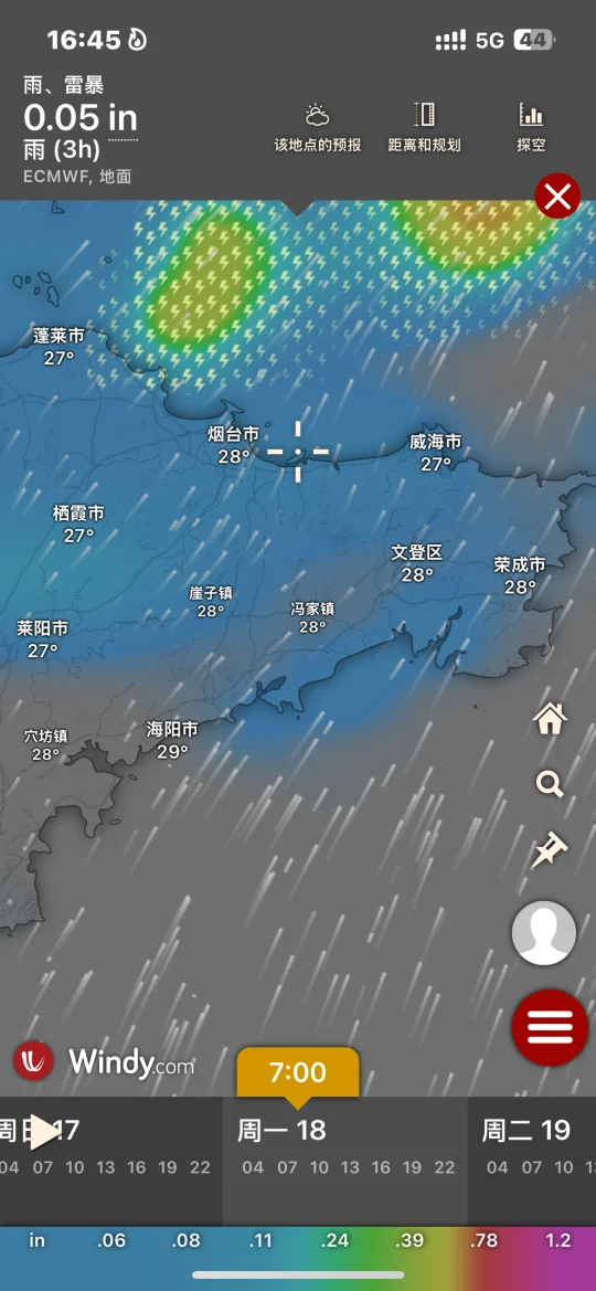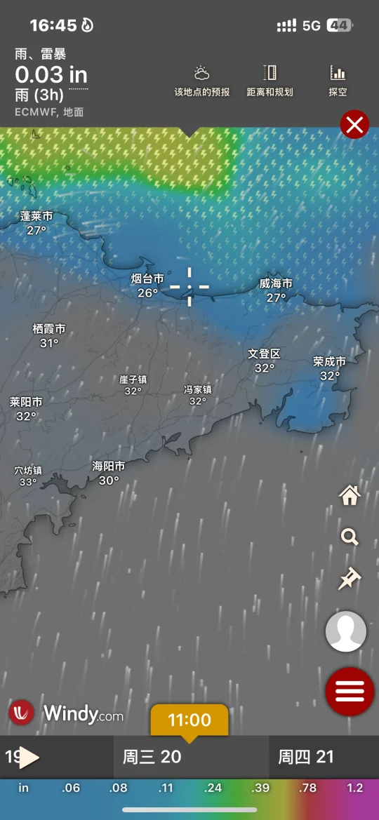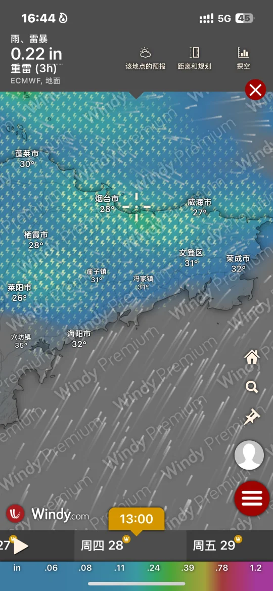 Hi.宝子们好,欢迎来烟台旅游观光!天气基本三天内准确度高!