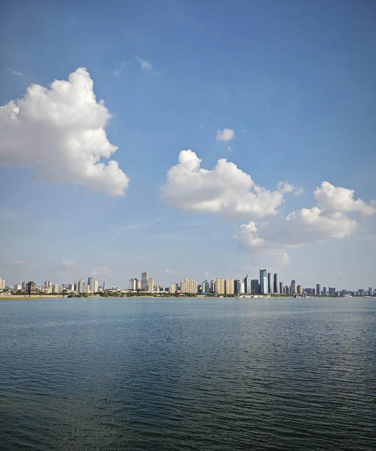 “海滨城市”南昌。此时的赣江,烟波浩渺,颇有一番大海的气势。名满天下的滕王阁,就在江的对面。现在准备徒步过去,看要多长时间。一座城市,拥有一条大江大河,城市景观的确不一样。赣江是南昌的母亲河,也是南昌的景观河。此时,南昌依旧阳光灿烂,但江边和风吹拂,还真的不太热。#旅游# #南昌城市风景# #南昌风景#