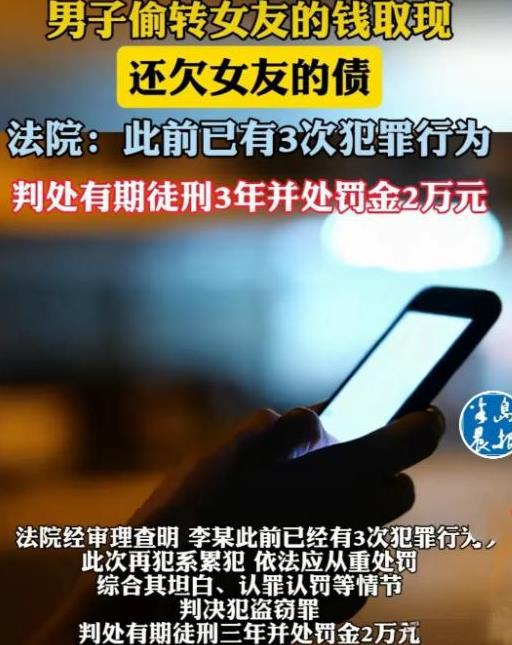 安徽定远,李某被债务逼得焦头烂额,一想到要被强制执行拘留就害怕。他盯上热恋女友张某,编造朋友急用钱谎言,骗得张某转了5.3万元。后来张某催款,李某趁其上厕所,偷用手机转走5万,还删记录拿现金谎称朋友还钱。张某发现后报了警,民警一查李某竟是多次获刑的惯犯,最终判其有期徒刑三年并处罚金2万。 李某之前因为一些糊涂事欠了一屁股债,现在债权人天天催着还钱,也下了强制执行的通知,要是再不还钱,就得被拘留。 一想到要在那冰冷的拘留室里待着,李某晚上躺在床上翻来覆去,根本睡不着觉。 这李某脑子一转,就把主意打到了自己热恋女友张某身上。张某是个单纯善良的姑娘,对李某那是掏心掏肺的好。 李某心里琢磨着,要是能从张某这儿弄点钱来,先把眼前的债务危机应付过去,说不定就能躲过这一劫。 于是,李某一脸焦急地找到张某,装作很为难的样子说:宝贝,我有个特别好的朋友,家里出了大事,急等着用钱,现在到处都借不到,我实在不忍心看他走投无路,可我手头也没那么多,你看你能不能先借我点,就当是帮我一个忙,等他缓过这阵,肯定第一时间还你。 张某一听,心疼李某,也觉得朋友有难应该帮一把,二话不说,就给李某转了5.3万。 李某拿到钱后,赶紧把钱拿去还了债。可这钱就像流水一样,总有花完的时候。 没过多久,张某就开始催着李某还钱。李某这下可犯了难,他压根就没打算还这笔钱,现在被催得紧,心里直发慌。 有一天,张某和李某一起在家休息,张某起身去上厕所。李某看着张某放在桌上的手机。 他左右看了看,确定没人注意,就迅速拿起张某的手机,熟练地解开密码,打开转账界面,给自己转了5万。 转完账后,他还赶紧把转账记录给删了,生怕留下什么蛛丝马迹。 等张某从厕所回来,李某装作若无其事的样子,从口袋里掏出一沓现金,笑着对张某说:宝贝,你真是我的福星,我那朋友刚把钱还给我了,这是5万,你先拿着。 张某也没多想,还觉得李某挺靠谱的。 可纸终究包不住火!过了几天,张某在整理账单的时候,突然发现有一笔5万的转账记录不见了。 她越想越不对劲,心里隐隐觉得有些不安。她仔细回忆了一下,想起那天李某在自己上厕所的时候拿过手机。 张某立刻质问李某,李某一开始还支支吾吾地想蒙混过关,可在张某的再三追问下,他终于承认了自己偷转钱的事实。 张某没想到自己真心对待的男友,竟然会做出这样的事情,她直接报了警。 民警一调查发现,原来李某竟然是个惯犯,之前就多次因为盗窃、诈骗等罪名获刑,这次又犯下盗窃罪,而且还是累犯。 1,李某一开始编造朋友急用钱的谎言,骗取张某5.3万,这一行为明显构成了诈骗罪。 根据《刑法》第二百六十六条规定,诈骗公私财物,数额较大的,处三年以下有期徒刑、拘役或者管制,并处或者单处罚金;数额巨大或者有其他严重情节的,处三年以上十年以下有期徒刑,并处罚金。 在这起事件里,5.3万一般可认定为数额较大,李某本应因诈骗行为受到相应的刑罚处罚。 2,李某趁张某上厕所,偷用其手机转走5万,还删除记录,这又构成了盗窃罪。 依据《刑法》第二百六十四条,盗窃公私财物,数额较大的,或者多次盗窃、入户盗窃、携带凶器盗窃、扒窃的,处三年以下有期徒刑、拘役或者管制,并处或者单处罚金;数额巨大或者有其他严重情节的,处三年以上十年以下有期徒刑,并处罚金。 5万同样属于数额较大的范畴,李某的盗窃行为也难逃法律制裁。 3,而且,李某还是累犯。 根据《刑法》第六十五条规定,被判处有期徒刑以上刑罚的犯罪分子,刑罚执行完毕或者赦免以后,在五年以内再犯应当判处有期徒刑以上刑罚之罪的,是累犯,应当从重处罚。 李某之前多次获刑,这次又犯下诈骗和盗窃之罪。 最终,根据李某的犯罪事实和情节,判决李某有期徒刑三年,并处罚金2万。 有人觉得张某太傻太天真,在恋爱中太容易相信别人,才会被李某骗得团团转。 也有人觉得李某太可恶,为了钱不择手段,连自己的女友都坑,简直没有一点人性。 您对这件事有什么看法呢?是觉得张某应该吸取教训,以后在恋爱中多留个心眼,还是觉得李某的行为应该受到更严厉的谴责呢? (信息来源:半岛晨报8月17日报道)