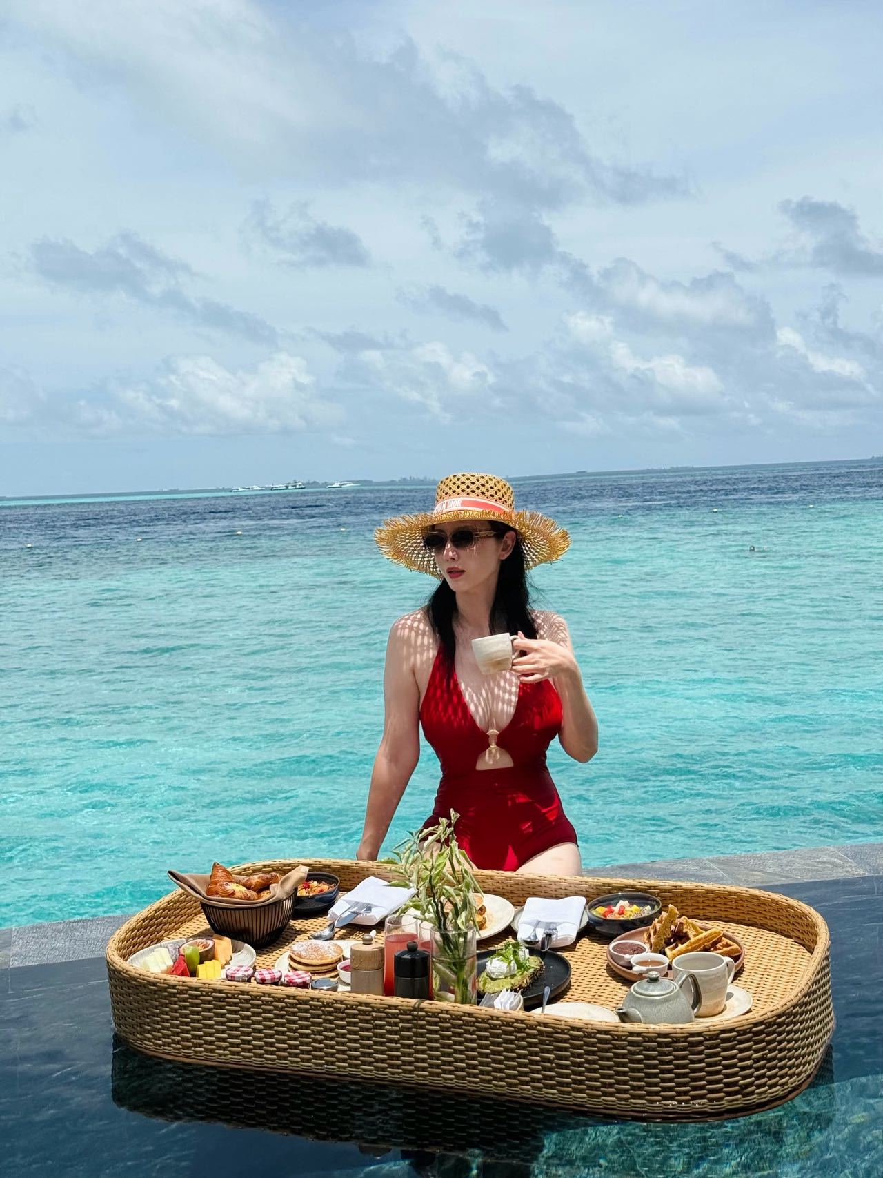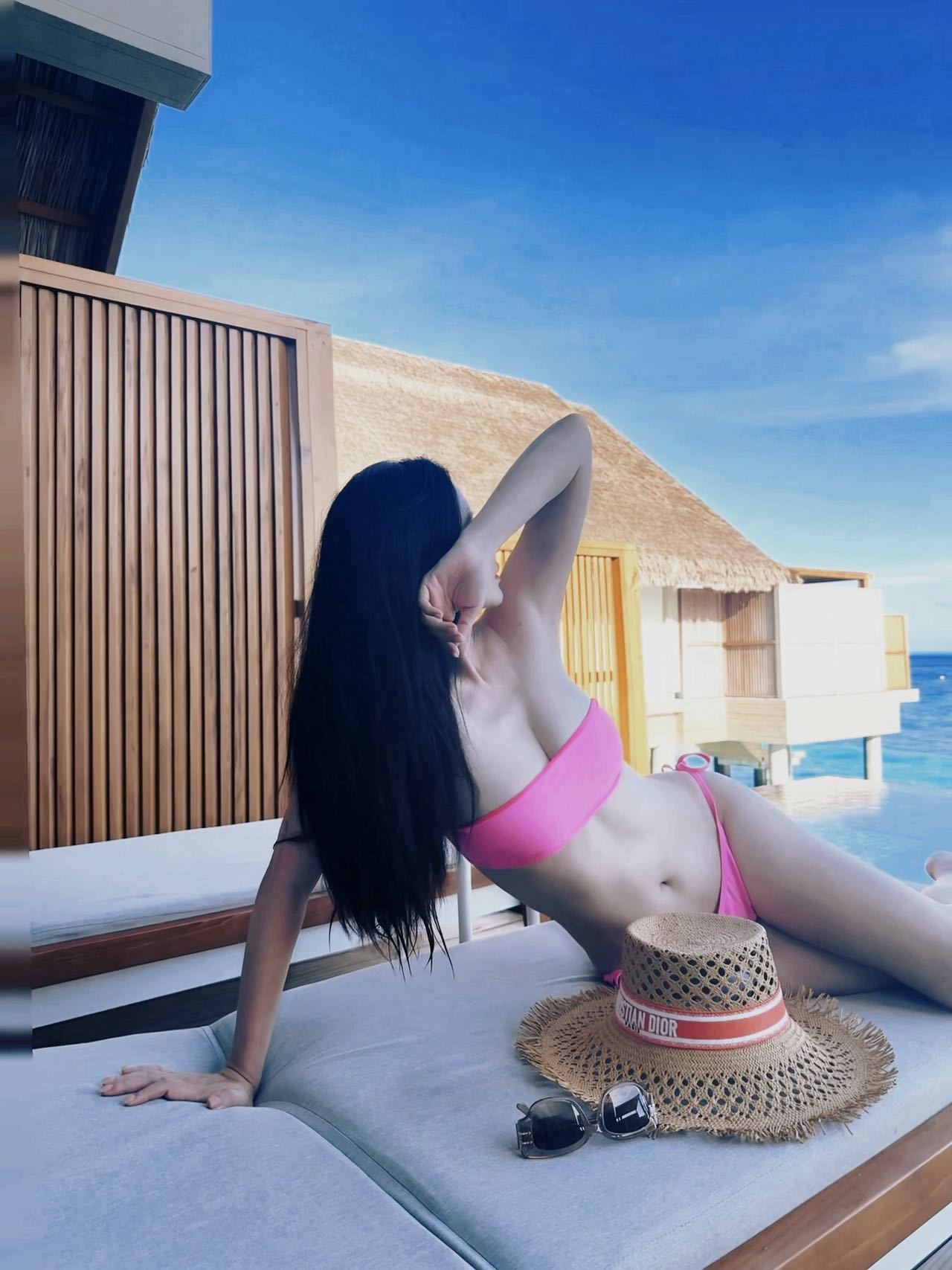张萌海岛plog分享马尔代夫度假照,一po就是18张,每一张都透着放松和快乐,