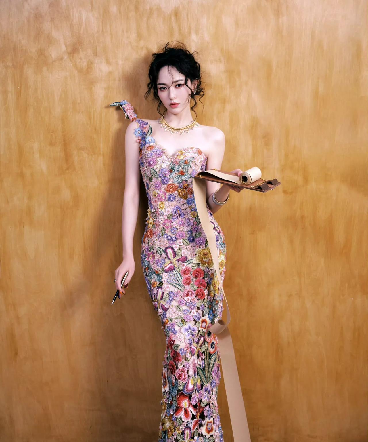 唐嫣W年度光影盛典 唐嫣来啦 !以一条 Rahul Mishra 2025 秋冬高定系列繁花裙装搭配 Tiffany & Co. 珠宝即将亮相 W 盛典 , 唐嫣花仙子造型亮相,唐嫣身穿秋冬高级定制系列 花卉刺绣裙装,以立体花朵拼接工艺呈现“繁花簇拥”效果,明艳又动人精致又优雅花仙子公主。浅色系花卉与流动线条塑造花神降临意境。突破以往简约风格,搭配蓬松卷发与花卉头饰,强化“花仙子”视觉主题。