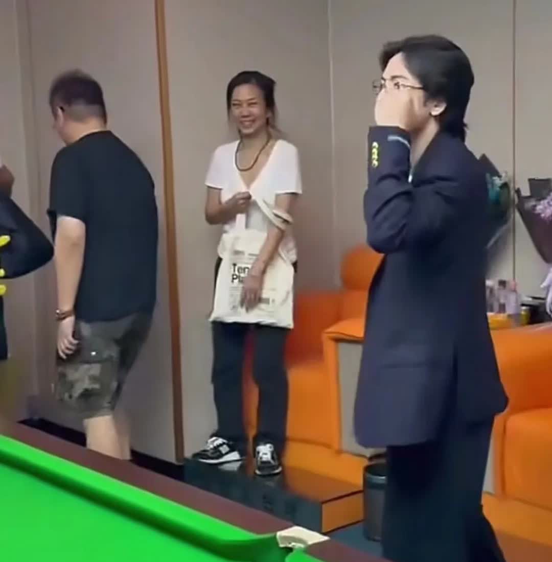 萧敬腾带51岁的老婆林有慧去打台球。 林有慧手里挎着小布袋,一进台球球厅,