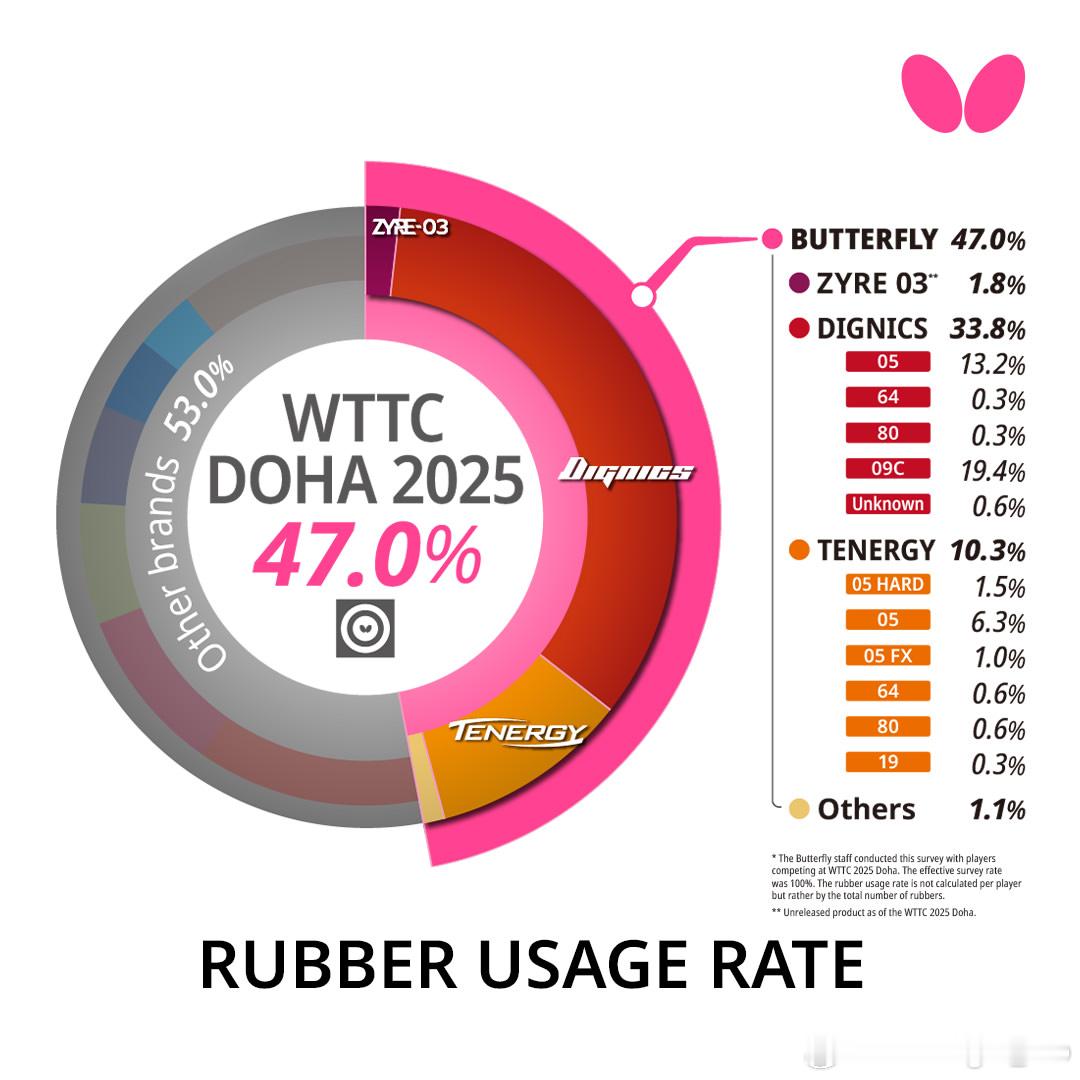 蝴蝶:2025年多哈世乒赛上蝴蝶器材的使用情况 🏓 数据充分展现出顶尖运动员们对蝴蝶品牌的信赖。
