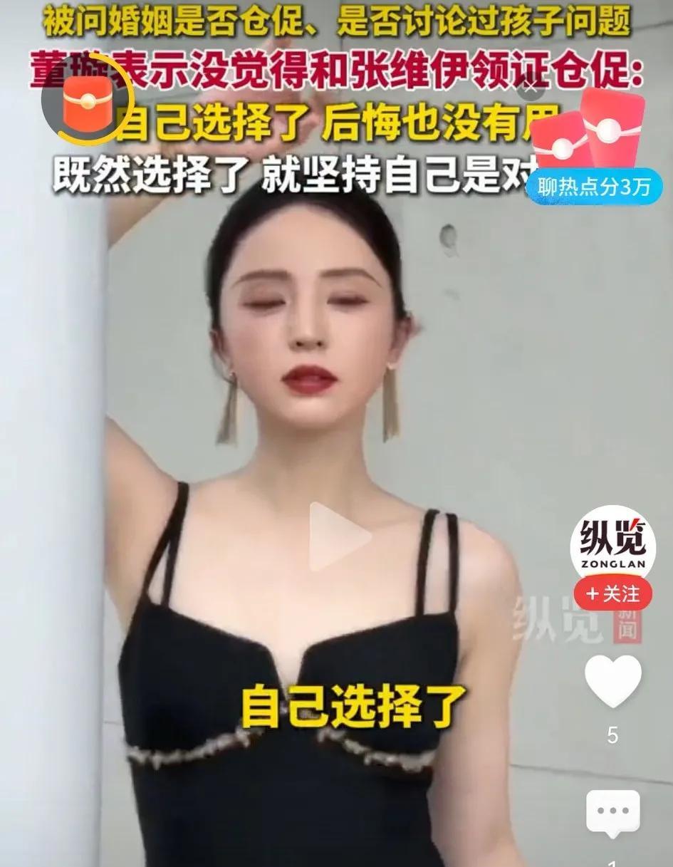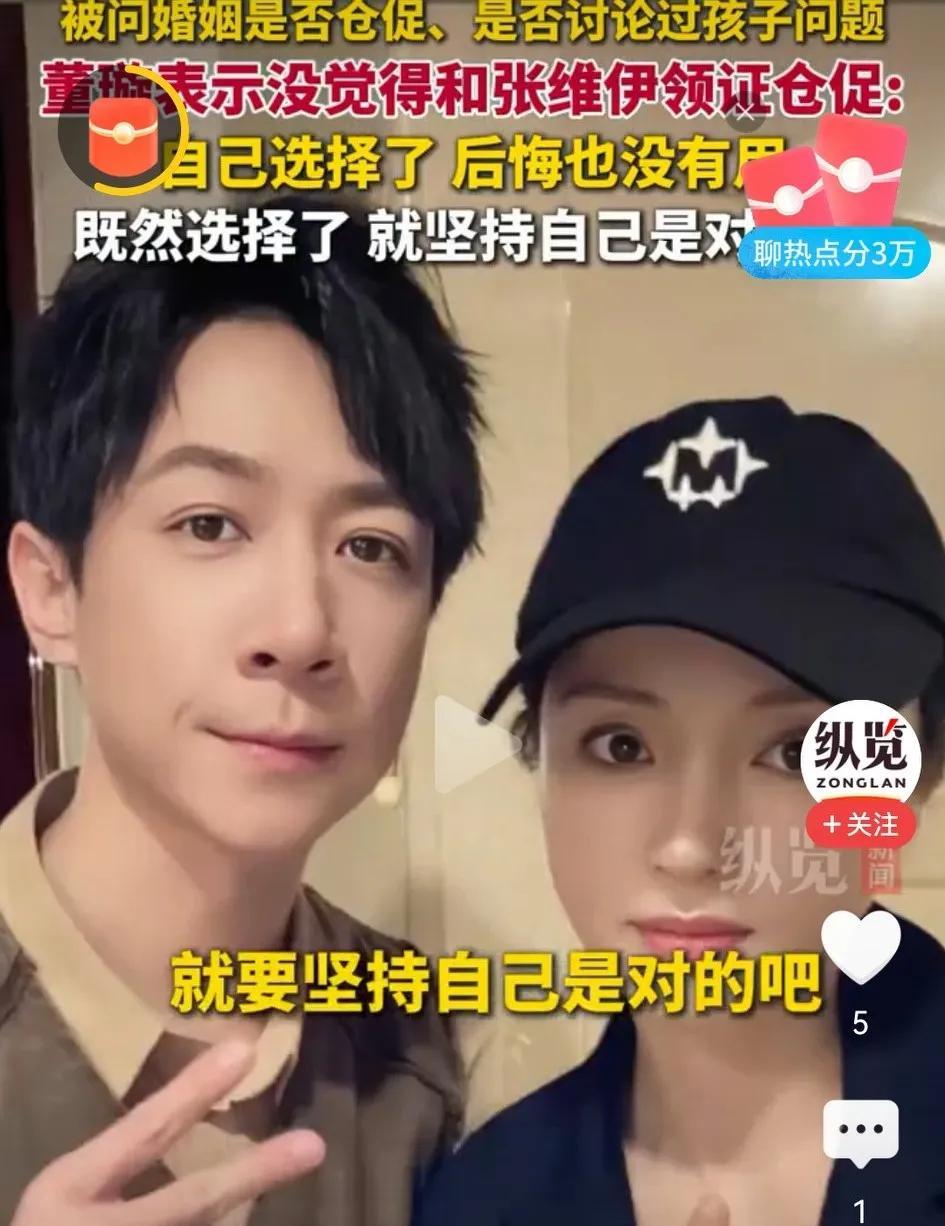 董璇表示没觉得和张维伊领证仓促 本月,董璇在综艺《姐姐当家》中坦言,与小9岁丈夫张维伊领证并非仓促决定。她透露,两人曾因现实压力短暂分开,领证后关系更踏实。虽因女儿分居,但董璇强调双方已磨合出相处节奏,婚姻是理性考量后的选择。