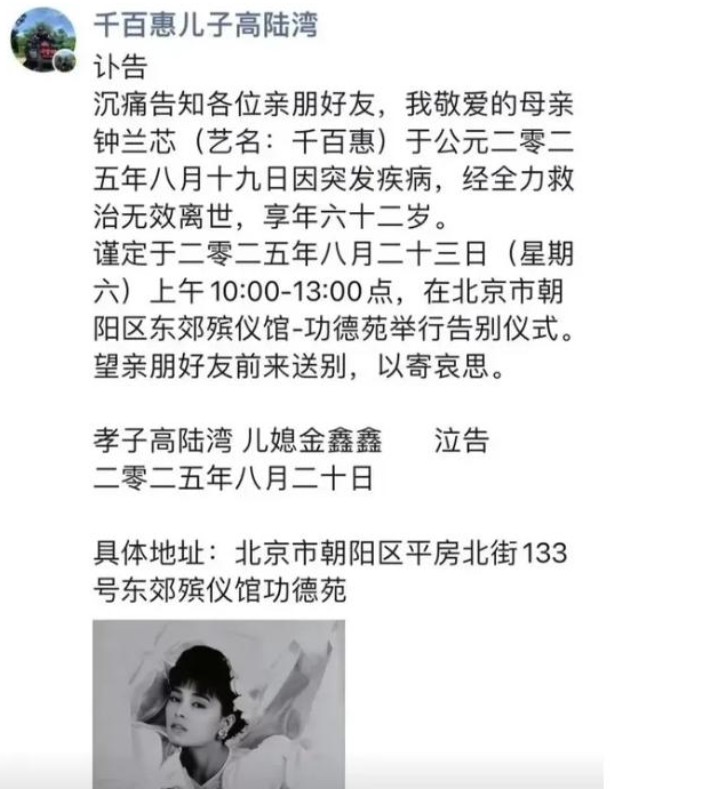 曝62岁千百惠去世!百听不厌的《走过咖啡屋》永远的经典,陪了几代人,愿千百惠女士