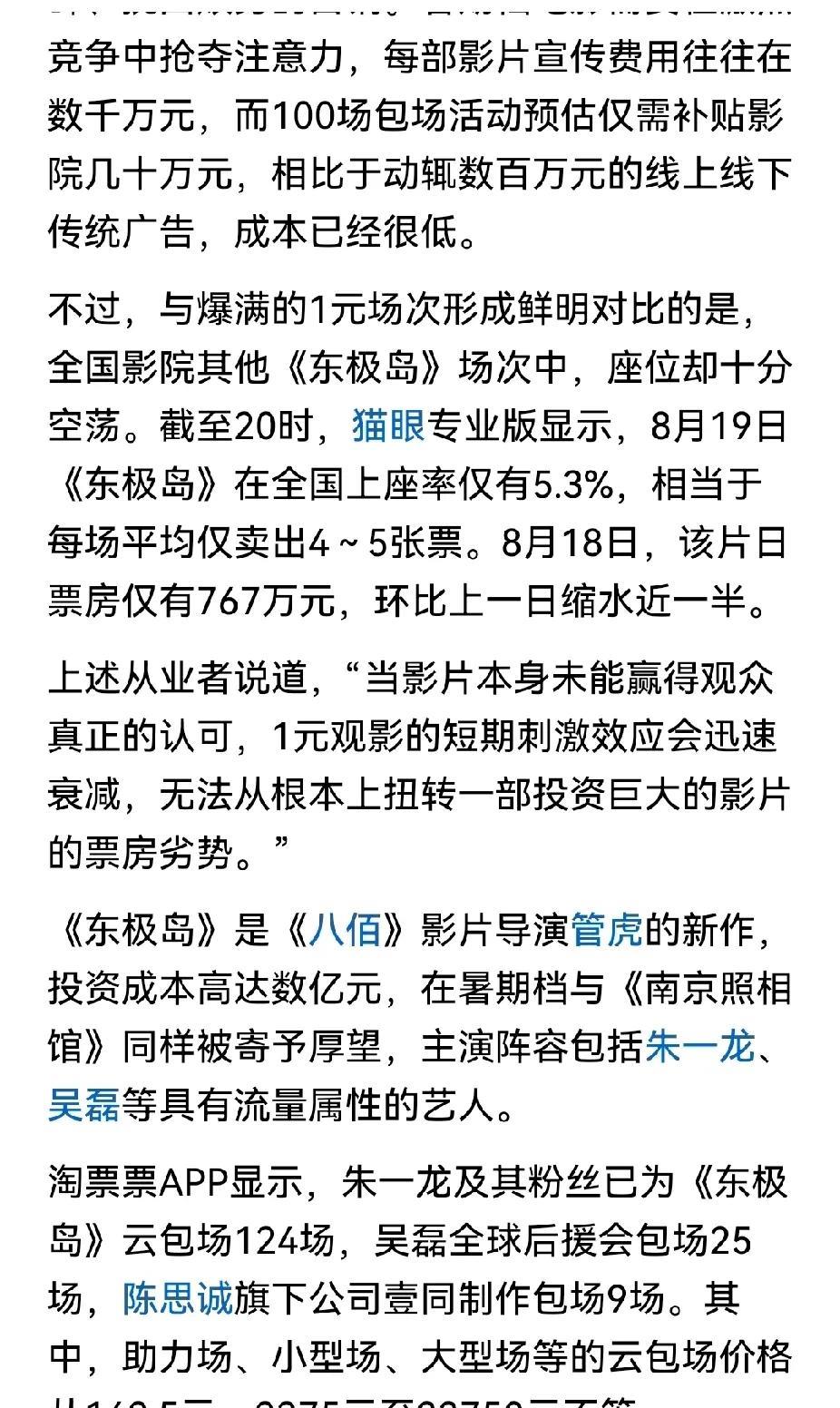 别说东极岛用一元票价吸引人,就算是片方倒贴我五十块,我也不会去电影院看东极岛,下