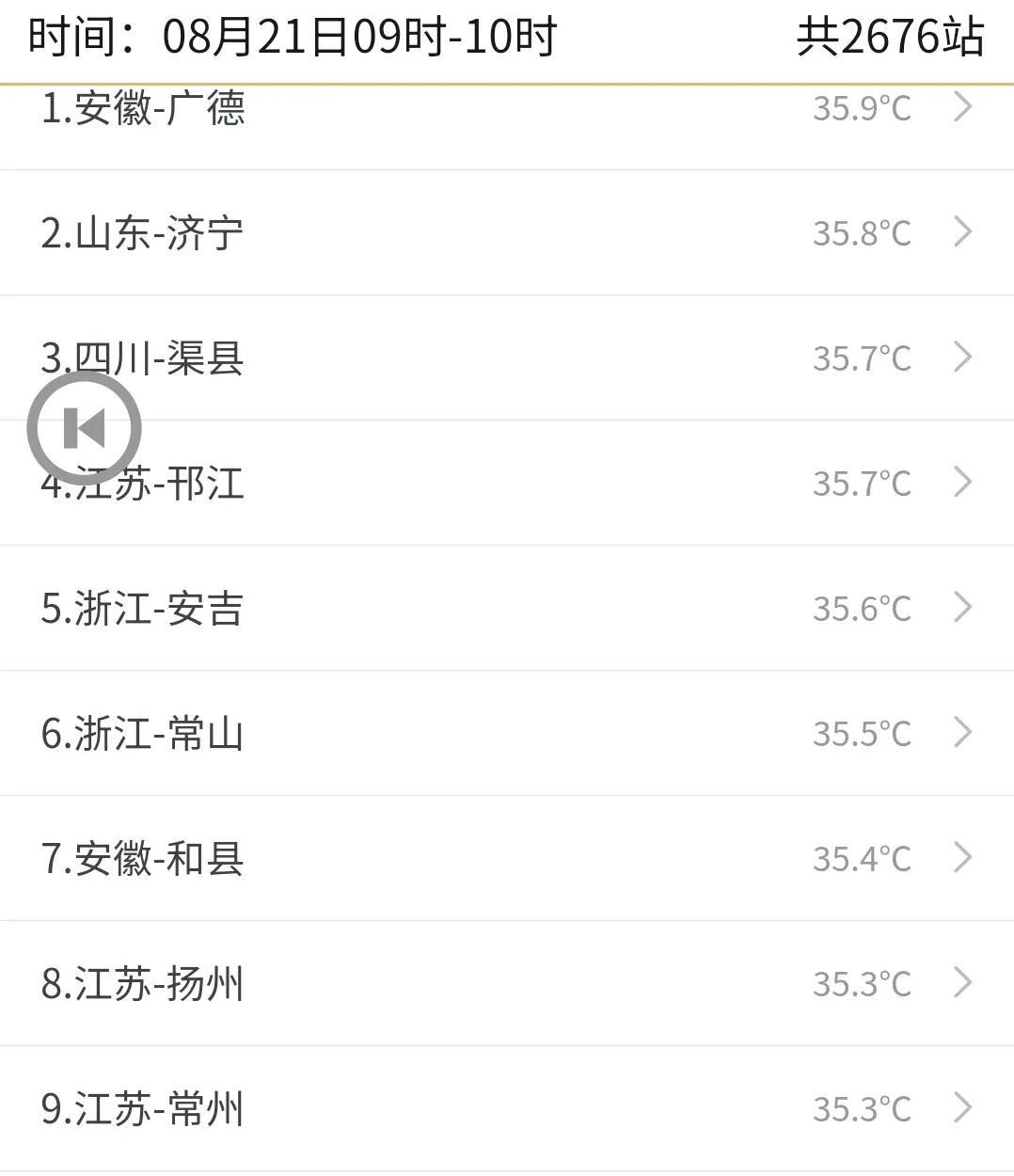 从今天的天气图实况来看,今天副热带高压范围比较宽。广东、湖南,北至山东、河南一带副热带高压的影响。 不过今天华南一带的副热带高压稍微还是有点虚,从850 百帕流程图来看,广东、湖南、广西一带都有暖湿气流提供水汽输送。 从今天的最新卫星云图上来看,山东、河南、安徽、江苏一带云量较少,天气晴好。 南方广东、湖南、广西、贵州以及云南一带、云层覆盖,其中云南、贵州西部、广西西部一带的云量还较为厚实。 现在正是川渝一带稻谷收割的农忙时节,今天四川中东部一带天气非常晴好,重庆一带有一些分散性的云层,不过好在重庆境内目前暂时没有降雨。 上午10点钟,重庆主城沙坪坝温度已经达到了33.8 度,重庆垫江温度31.1 度,四川南充温度也有33.4 度,虽然说有的地方可能会有一点云层, 但是这个天气还是非常适合稻谷晾晒的。 从雷达回波来看,今天广西崇左、贵州都匀南部以及云南曲靖一带有一些分散性的阵雨天气。 今天上午10点到全国温度排行榜来看,安徽广德35.9 度排在第一,山东济宁35.8 度排在第二。 除此之外,由于受到冷空气影响,今天 10 点,24 小时同比甘肃、宁夏以及陕西中北部出现了比较明显的降温,像陕西延安降温8 度,富县、黄陵降温甚至超过了10 度。