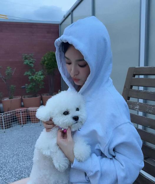 宋慧乔晒与爱犬Ruby的合照,与Ruby相处的时候,宋慧乔看起来真的好放松呀!