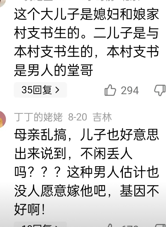 我为这位男男的感到庆幸。看看这个儿子的长相,再听听这个儿子的说的话,再看看这个孩子的行为举止。确定这样的儿子不是亲生的。也是一种庆幸吧。如果这个孩子要是亲生的话,那才叫灾难。谁有这样的儿子?都是一种灾难。到哪儿去?这样养了几十年能没有感情。就是养着小狗,小猫都有感情。是怎么会没有感情?说话的那个态度。我为这位男士感到庆幸。