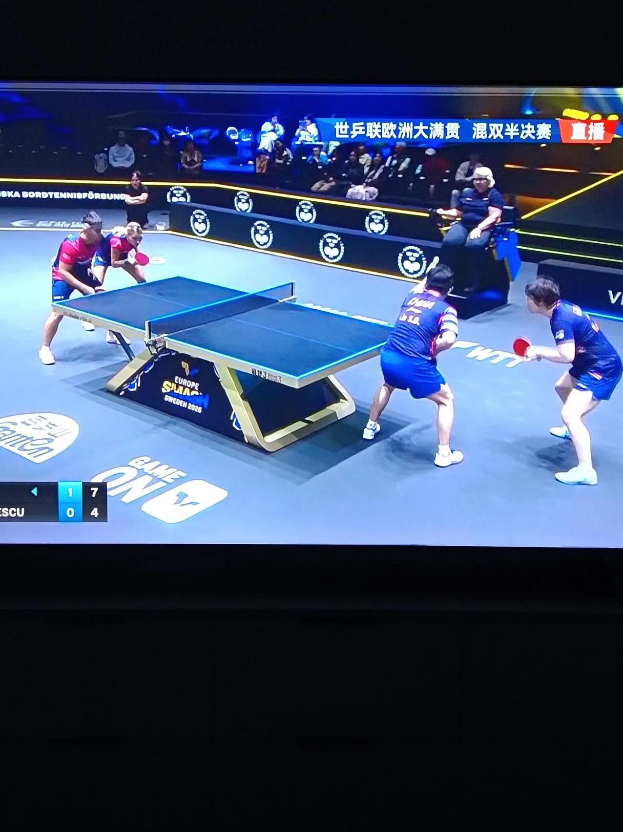 林诗栋/蒯曼3:0战胜斯佐科斯/约内斯库,晋级决赛。 第一局,林诗栋/蒯曼在比分