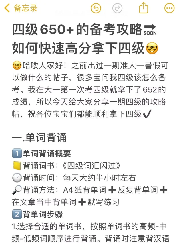 希望会对马上要步入大学/正在备考四级的宝有帮助🤓