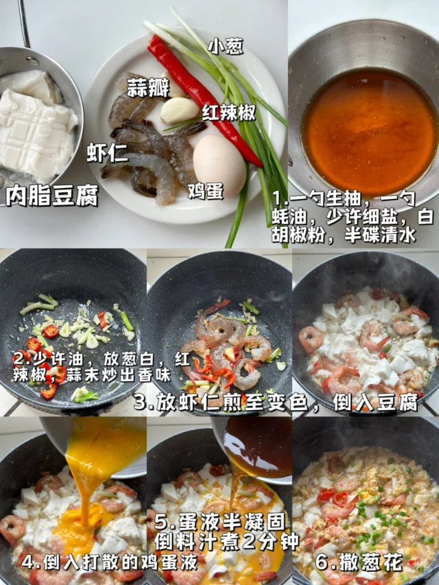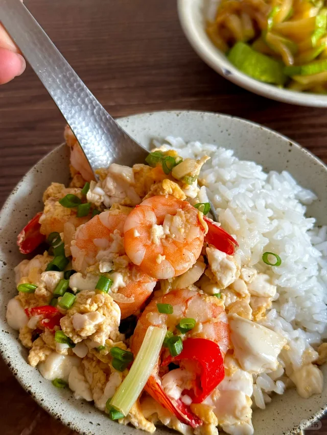 2.虾仁豆腐滑蛋盖饭