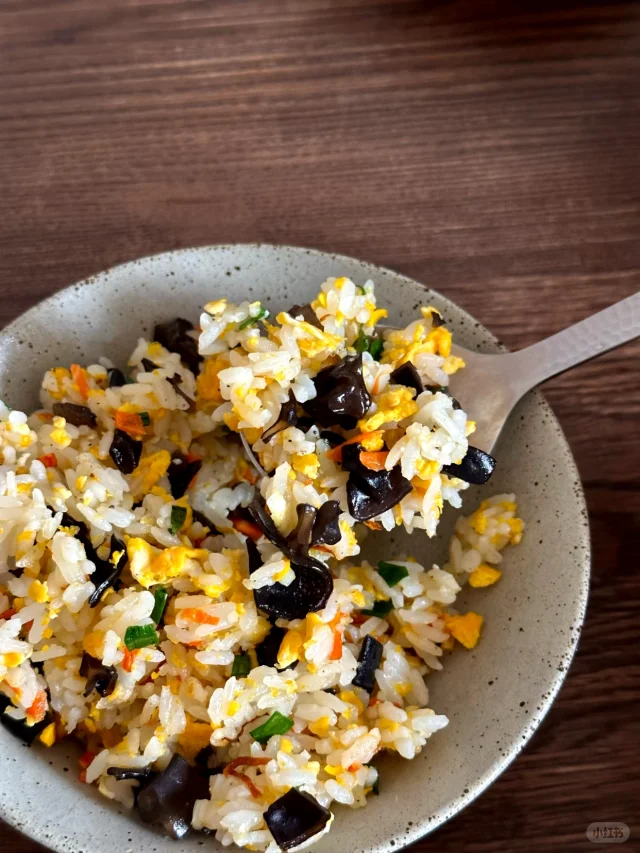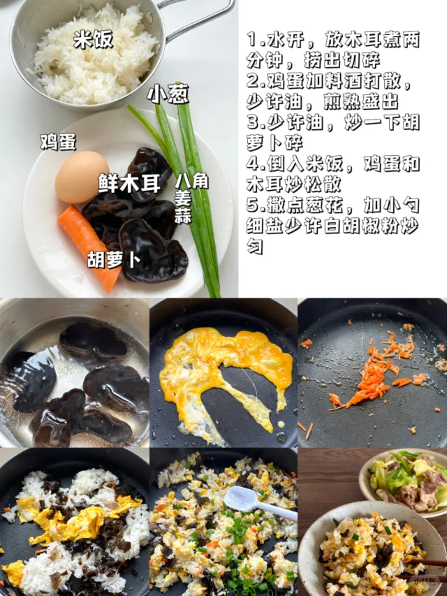4.胡萝卜黑木耳炒饭