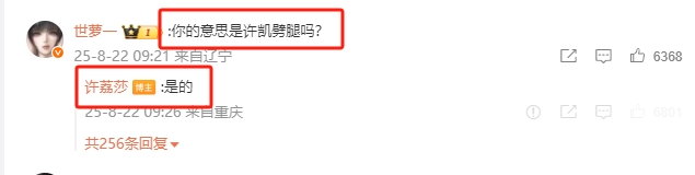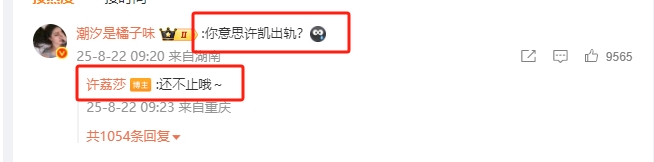 随后网友在评论区提问称许凯当时出轨吗?许荔莎回复称“不止”,被问到是否是许凯劈腿,许荔莎回复说“是的”。