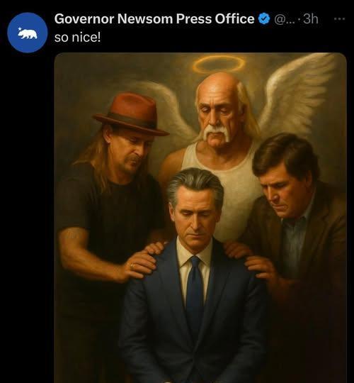 质疑特朗普,成为特朗普,超越特朗普!纽森靠模仿特朗普狠狠圈粉 加州州长模仿特朗普发帖爆火,共和党急眼了:太不严肃了! 加州州长纽森,也开始走特朗普的路了。 近来,纽森团队发了不少宣传照,风格和特朗普如出一辙,比如用全大写字母发帖、配图表情包等,不知道的还以为纽森的账号被盗了。 这波模仿始于8月初,当时纽森办公室用开玩笑的语气,发了一条特朗普风格的帖子,没想到一下子就火了。 于是,纽森就在流量面前迷失了自我,继续照搬特朗普,制作了一系列特朗普风格的梗图,比如纽森头戴皇冠,又或者骑着迅猛龙,总之怎么夸张怎么来。 在配文风格上,纽森团队也极力模仿特朗普,用一些很夸张的词语,比如“美国赢了”“拯救美国”之类的表述。 这样一来,特朗普阵营坐不住了。保守派人士批评纽森不够认真,说他身为加州州长,每天只知道玩梗,这怎么让人相信他能担任更高的职位? 纽森则将共和党对他的批评视为一种胜利,因为他模仿的是特朗普,批评他不就是在吐槽特朗普吗? 他回应称,如果共和党觉得这种风格有问题,那为什么纵容特朗普这么做呢?他可是一国总统,每天在社交媒体上玩梗,实在有负美国民众的期待。 这就叫用魔法打败魔法,建议美国政客都学起来。当前美国的政治氛围,已经容不下正经严肃的政客了,会整花活儿才能吸引选民。 事实的确如此,自从开始抄袭特朗普之后,纽森办公室的账号粉丝暴涨,短短20天新增25万粉,关于他的热搜话题也一个接一个,美国的吃瓜群众还会专门上网搜纽森的梗图,主打一个全民玩梗。