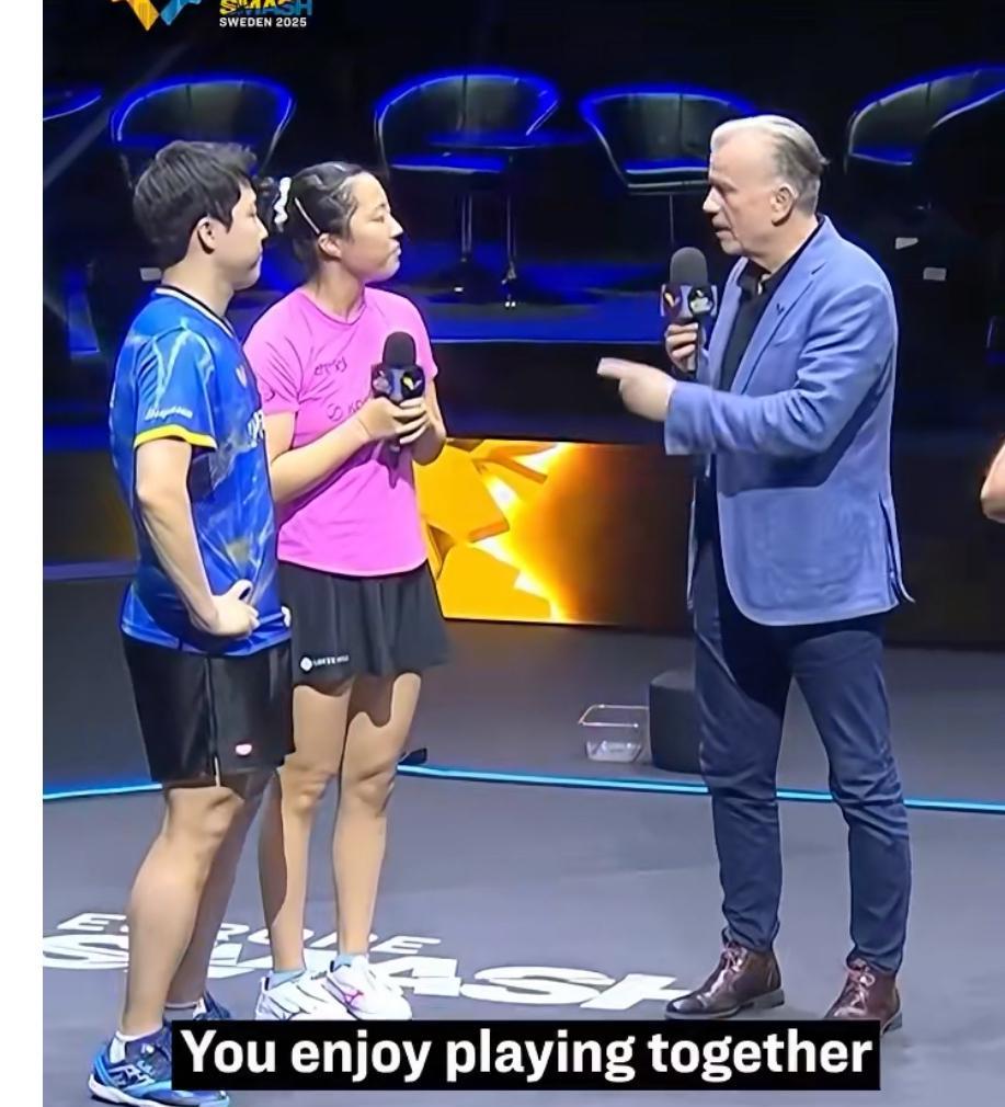 赛后接受采访时,当主持人抛出“你们俩谁在场上更像主导节奏的那一方”这个问题,有趣