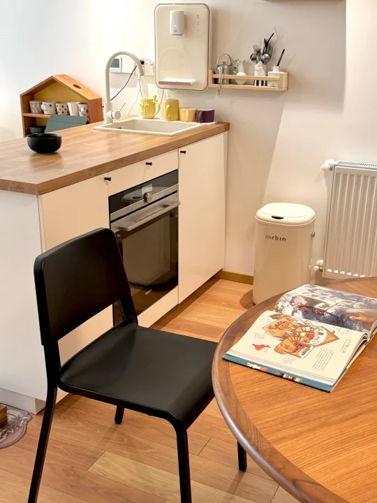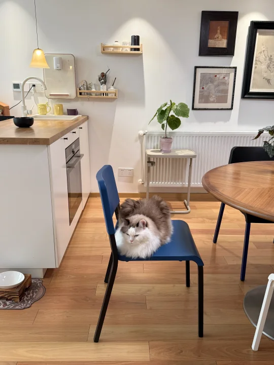 入住第5年,我的10㎡小餐厅布局几经变动!,终于到了个人比较满意的状态! 靠墙做2.4米餐边柜+宜家墙隔板,垂直收纳省出过道空间,小户型也不压抑! 圆桌直径严格控在110cm,搭配4把宜家帝奥多斯餐椅,蓝黑跳色瞬间点亮整个餐厅! 说说最近新购的宜家餐椅真实体验: - ✨我用磨砂黑+雾霾蓝做了双色混搭,线条极简不抢戏 - 椅子很轻,单手都能拎起!不用时可以叠在一起塞在角落,真的是一点儿也不占地方 - 经常拿去放客厅当边几/摆书房当花架,把家布置的更有格调 - 坐感很舒适,小伙伴来聚会,160cm-180cm实测都夸坐着很舒服! 5年前装修的时候就选择了宜家,大到衣柜橱柜斗柜,小到盘子花盆装饰画,全都在宜家挑选。 如今5年过去了,所有的大小家具一个没坏,全都各司其职,默默陪在我们身边! 每次宜家上新了还是习惯去他们的APP挑挑看,好看不贵,品质在线,真的是我心中无法替代的家居品牌了! 宜家宜家餐椅帝奥多斯餐椅椅子推荐餐厅小户型餐厅宜家宜家椅子餐椅推荐椅子餐椅