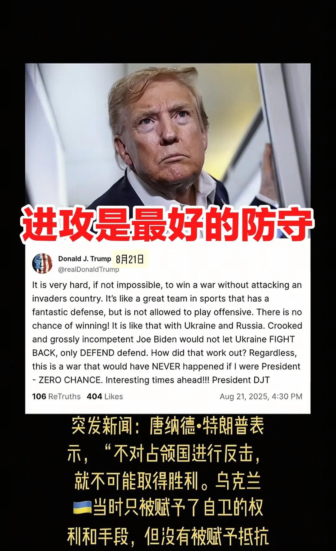 美国总统特朗普的态度再次发生巨大转变,与前些天的自己,又如同换了一个人,其对国际社会表示与暗示,他可能会在未来支持乌克兰进攻俄罗斯的本土,在偏向俄罗斯后,再转回来,重申表达依旧对乌克兰的全力支持。 特朗普觉得当年美国前总统拜登不让乌克兰大规模反击俄罗斯本土,是一个糟糕错误的决定,当然,战争的发生也是不该的,既然打了,应该给予乌克兰放手打击俄罗斯境内目标的可能,美国应该给予明确信号。 为此,特朗普用了一个合理的比喻,如果在任何球赛中,一支光防守而不进攻的球队,很难击败对手。 换而言之,乌克兰作为被占领国,如果不对俄罗斯占领国本土发起反击与进攻,将无法取得胜利,他非常确信这一点。因此他认为乌克兰不能仅仅自卫,而应该强有力打击俄罗斯。 这样一来,由于乌克兰与欧洲坚决不和俄罗斯妥协,谈判可以,但是过度让步不现实,只能继续大战。由于形势再次发生微妙变化,特朗普又变换姿态了,不再是上周的克拉斯诺夫同志了,又变回了美国总统态势,才有了此番表态。