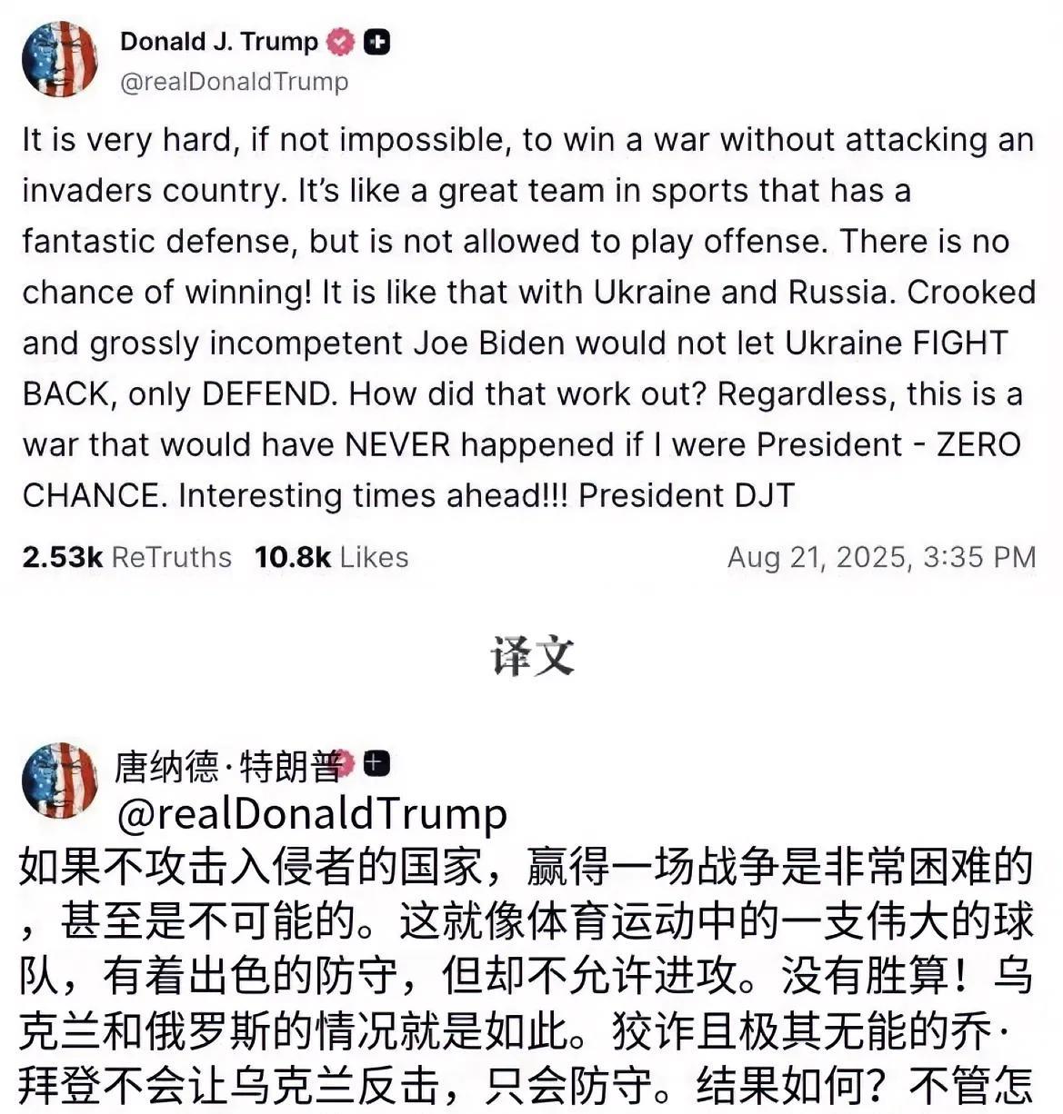【川普称乌克兰之所以被动是一味防守造成】 川普在社交平台发文表示,造成乌克兰今天