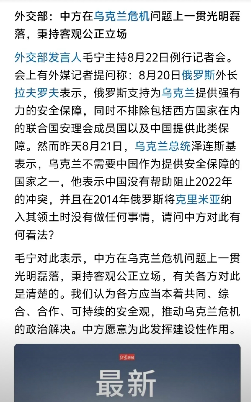 再者,明明是泽连斯基为了向西方献媚而甘当北约东扩之马前卒,这才挑起了俄乌战争。现在他去颠三倒四的又埋怨起了中国在2022年没阻止俄乌冲突……这就怪了,俄乌冲突是我们能阻止得了的吗?你乌克兰别去充当北约东扩的炮灰,与北约划清界线的话,又哪儿会有战争?