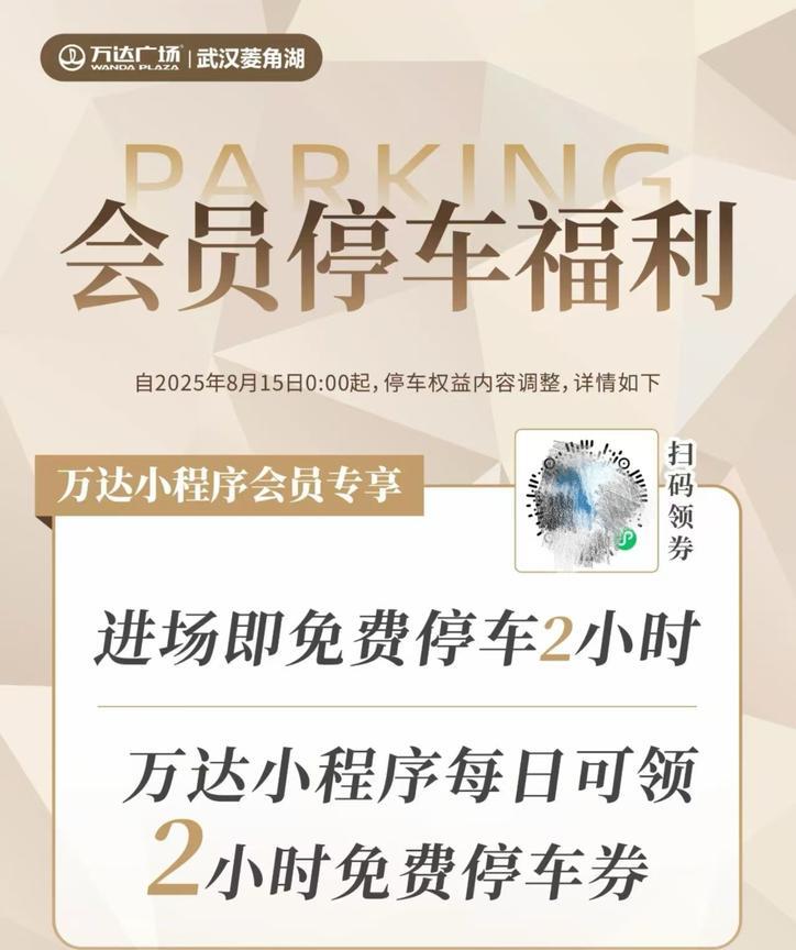 武汉城事! 据网友爆料:武汉菱角湖万达自8月15日起,添加万达会员小程序,最高可免费停车4小时,有需求的可以薅一把羊毛哦!#武汉身边事# #金粉社区#