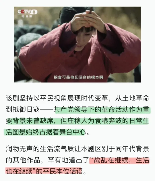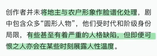 来看央视怎么评生万物 剧情: [一R]“《生万物》在人物塑造方面尽显中华民族性情中的温良底色,亦不回避小农意识的局限性。” [二R]“剧集客观还原了旧中国乡村错综复杂的阶级生态与生产关系,在表现土地革命大潮给乡民个体带来的内外冲击时,辩证地体现了人性的多面与幽微。” [三R]“正视时代局限,不轻易以当代观念居高临下评判她们的选择”