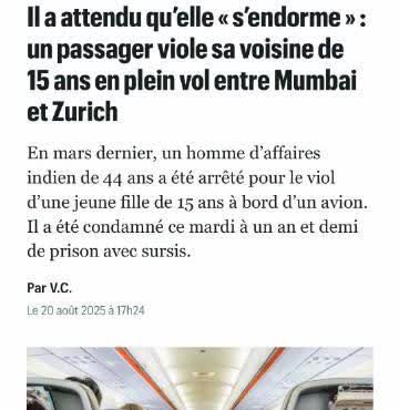 印度男子飞瑞士航班上强奸15岁女孩,强奸女孩的印度商人在瑞士获缓刑 一名印度商人在国际航班上强奸一名15岁女孩,被瑞士拘捕,近日被判处18个月缓刑和5年禁止入境。这一判决引起争议,批评者认为量刑过轻。 这一事件发生在3月份,一名44岁的印度商人乘坐瑞士航空公司飞机,从孟买飞往苏黎世,飞行时间超过9小时。他身边的乘客是一名15岁女孩,该商人先是和她搭讪,等到小女孩用毯子盖住头部和上半身睡觉时,他用手和性器官对其进行强奸。女孩虽被惊醒,但因为极度震惊和害怕,在行为过程中没有做出口头或身体反应。 瑞士航空公司证实,这名女孩在事后通知了一名机组人员。机组方面立刻将她从那名印度商人身边移开,由工作人员照顾。一名机组人员被指派在飞行的剩余时间里监视此男子。 飞机在苏黎世机场降落后,这名印度商人立即被捕。他起初否认了事实,后来供认不讳,“意识到自己犯了一个错误”,承认女孩没有同意,知道她年龄很小,声称自己“没忍住”。 瑞士比拉赫地区法院对该商人进行审判,他承认了强奸和对未成年人进行性行为的罪行。法院适用了瑞士关于性犯罪的新刑法,8月19日判处他18个月缓刑(有条件判决,由于他已经在监狱中度过数月时间,不必服刑),同时禁止他进入瑞士5年,终身禁止从事涉及定期接触未成年人的活动,并必须支付诉讼费用。判决后,这名印度商人被释放,并移交瑞士移民当局驱逐出境。 据印度国家犯罪登记局(NCRB)的数据,印度每年报告数万起强奸案件,然而由于污名化和害怕报复,实际强奸率可能更高,很多受害人不敢报告。 这一案件由瑞士调查和判决,效率显然比印度高。法官称判决结果“完全适当”,但是引起很多法律专家和儿童保护倡导者的批评,认为量刑过轻。 (扬子晚报国际新闻工作室 宋世锋)