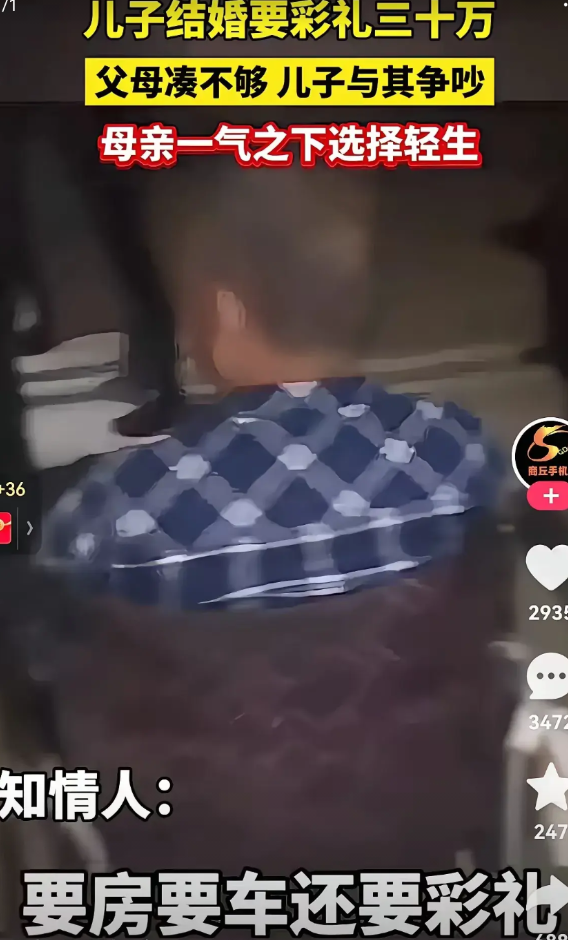 女子与男子结婚,男方父母为儿子准备了房子车子后,女子又提出要30万彩礼,不然就不结婚。 由于男方父母有三个儿子,两个大儿子都已经结婚了,也花了不少钱,父母东挪西借的,也凑不齐30彩礼。 小儿子看到父母拿不出30万彩礼,未婚妻就坚决不嫁。 小儿子急眼了,跟母亲打闹起来,发狠说:“要是拿不出30万,就跟父母没完。” 母亲气坏了,一时想不开,就喝了百草枯自杀了。 现在还在医院抢救。不过喝了百草枯,基本上是没救了。 不知道这个儿子现在有没有后悔?为了自己娶媳妇,把母亲逼上了绝路? 有网友在评论区说:“没有那么大的能力,还要养三个儿子?这不是自找的吗?” 也有人说:“这个儿子也是没出息,自己挣不来钱,就不要娶媳妇。逼着老母亲要钱?把老母亲逼上了绝路。” 还有人说:“这种女人,就不该娶,普通家庭,要30万,就是不怀好意?” 农村有很多这样的人,生了一堆孩子,特别是生了几个儿子,自己没有能力,儿子也没出息,做父母的把自己陷入两难境地。 还是现在的年轻人想的明白,干脆不结婚了,不生孩子,一了百了。多么干净? 大家说对不对呢?欢迎评论区留言。