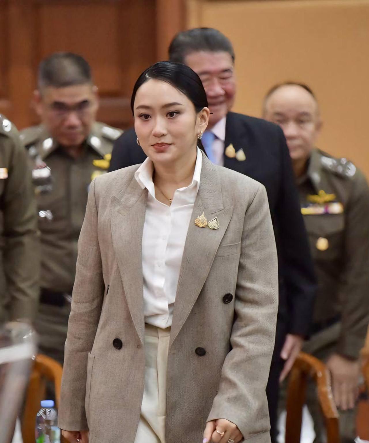 佩通坦气质完美,身穿灰色西装又飒又美 2025年5月29日,泰国总理佩通坦女士,现身警察总部二楼Promnok会议室。她身着灰色西装搭配白裤与白高跟鞋,颜值气质出众,尽显霸道女总裁风范。