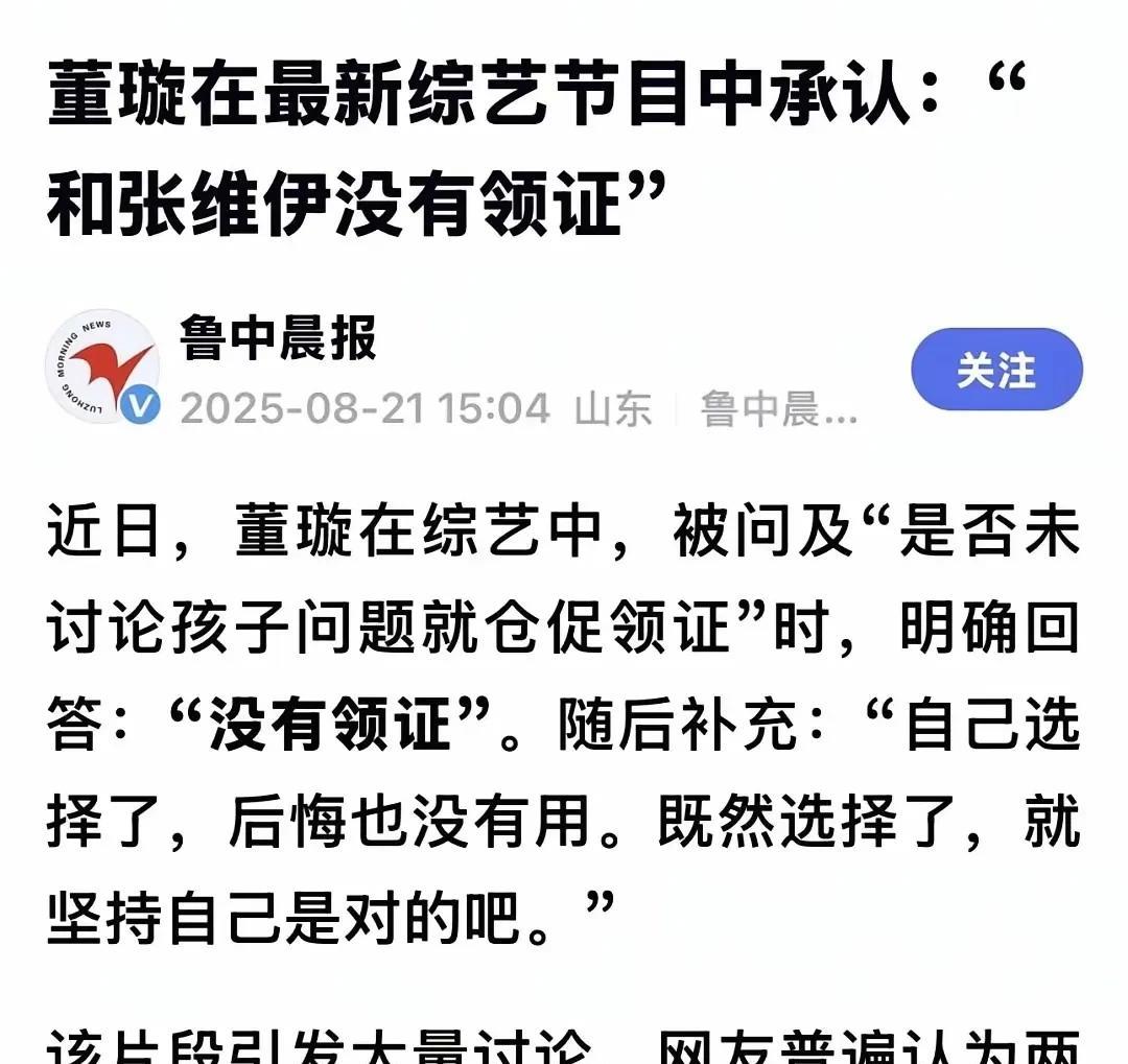 董璇和张维伊领证是早晚的事儿,其实张维伊不丑,就是太瘦,虽然大家说她两财富有差距,张维伊也不差,有工作,有房产,没有父母,生活很仔细,很会过日子。