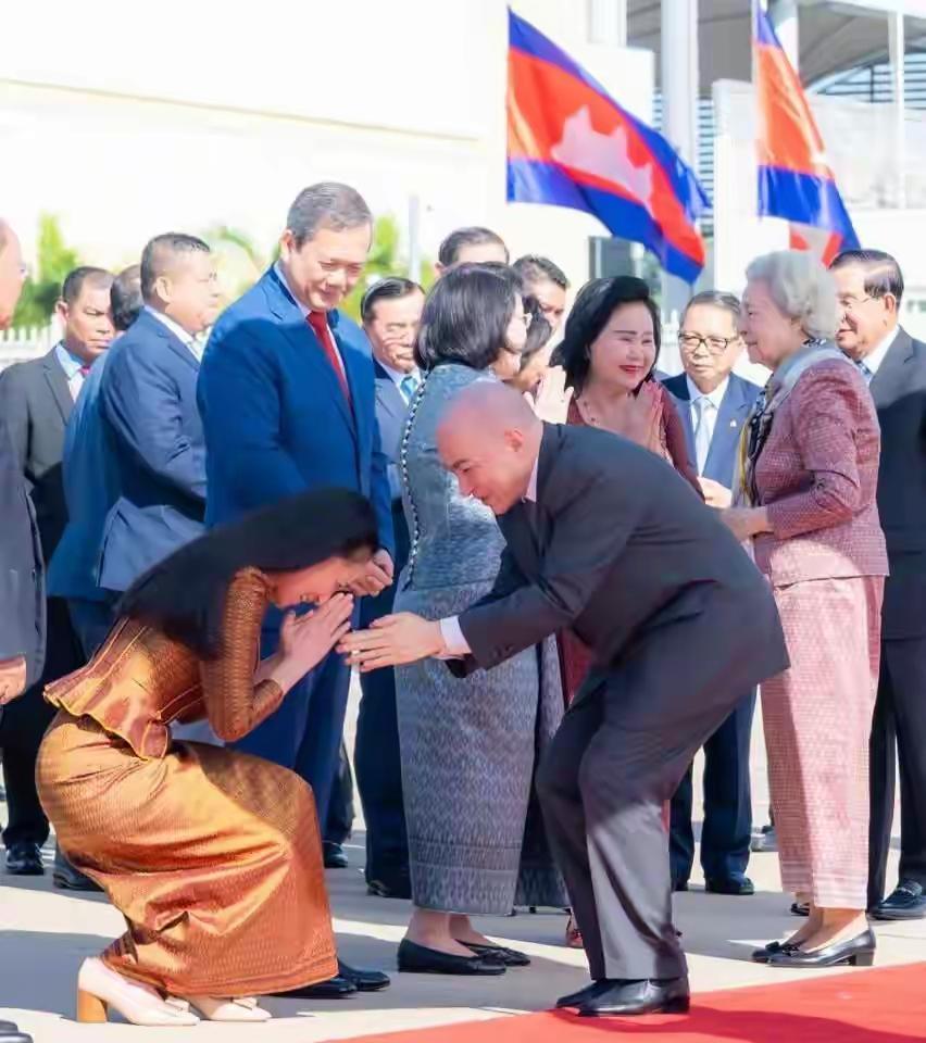 柬埔寨国王还有太后又来北京了! 这几组照片是他们来北京时候的画面,照片中莫尼列太后身穿紫色的套裙现身,还奚一个花色的丝巾造型也是非常减龄时尚,不知道的还以为她才七十来岁的样子,其实莫尼列这位老太太已经89岁了,不仅如此她自己还能登飞机,走路,脸色也非常红润健康,就算是她和儿子同框两人的年龄差也不是那么明显。 当然了这次媒体没有透露他们来北京做什么来的,不知道是不是来北京检查身体,或者马上就要到9月3日了,也许是过来看我们的阅兵。 值得一提的是,在莫尼列和儿子出发北京的时候,柬埔寨首相还有夫人也亲自过来送他们两位。