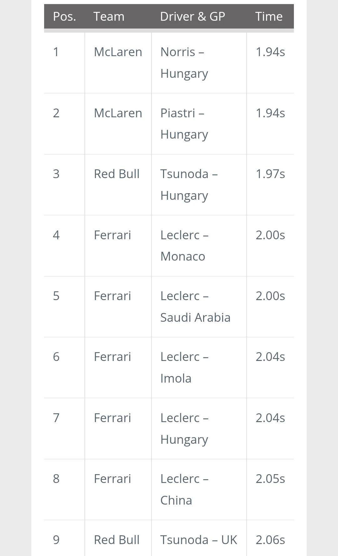 法拉利在2025赛季迄今为止的进站换胎中占据主导,前十名中法拉利占据6席,但法拉利未能进入前三。 在2025年F1赛季的前半段,法拉利一直是快速进站执行的标杆,经常在维修区的效率和精确度方面名列前茅。 直到匈牙利大奖赛夏休期前的最后一轮,这一据点一直没有受到挑战。在亨格罗宁比赛之前,法拉利一直占据本赛季进站排行榜的前四名。然而,当迈凯伦在更换轮胎时以非凡的速度改写记录时,这一连胜纪录被终结了。 在匈牙利,迈凯伦完成了两次闪电换胎,两次进站时间均为1.94秒,一次是为诺里斯,另一次也是为皮亚斯特里。 让法拉利更加沮丧的是,红牛车队也在匈牙利留下了自己的印记。他们为角田完成了1.97秒的进站,获得了今年第三快的成绩,并剥夺了法拉利进入前三名的机会。 即便如此,法拉利的整体稳定性还是惊人的。马拉内罗车队目前在排行榜上排名第四至第八位。尽管如此,一个关键的细节还是很突出——法拉利本赛季尚未突破两秒大关,迈凯伦和红牛都已经实现了这一点。 尽管如此,法拉利仍然处于获得 DHL 最快进站奖的有利地位,该奖项通过在整个赛季中奖励积分来奖励最稳定、最快速、最高效的车队。