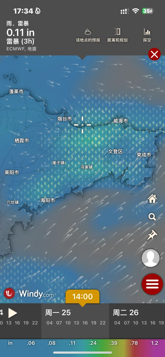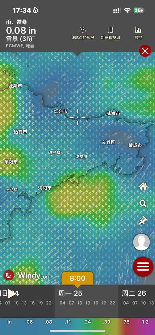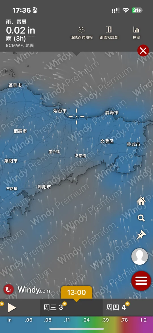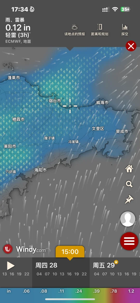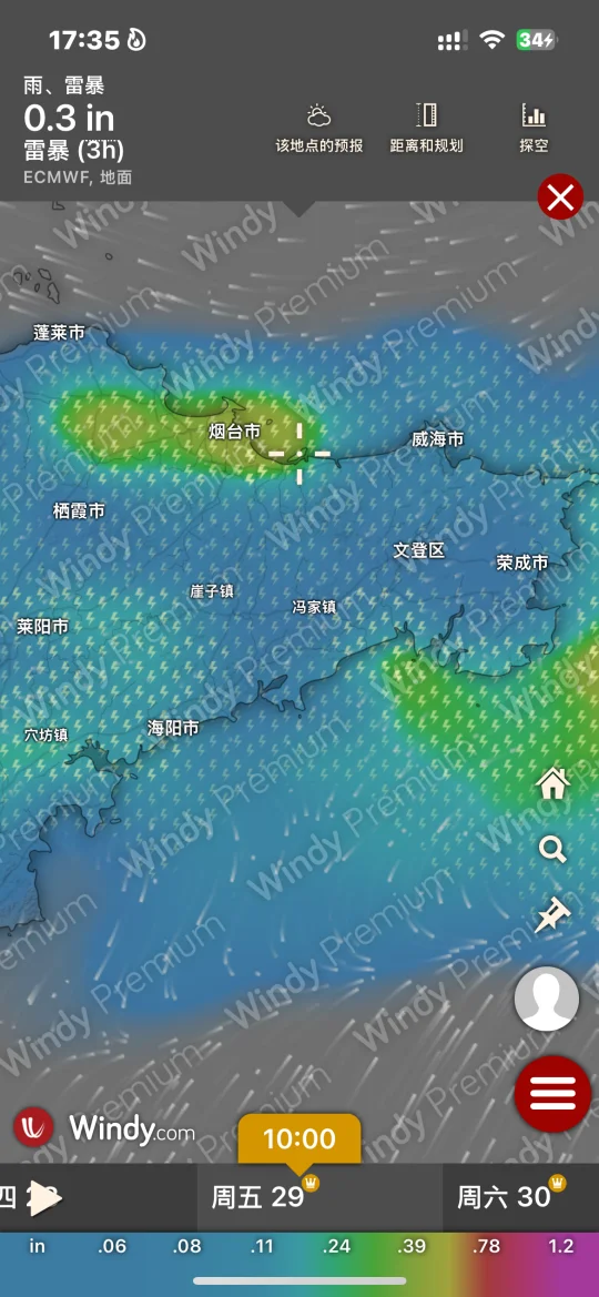 Hi.宝子们好,欢迎来烟台旅游观光!天气基本三天内准确度高!