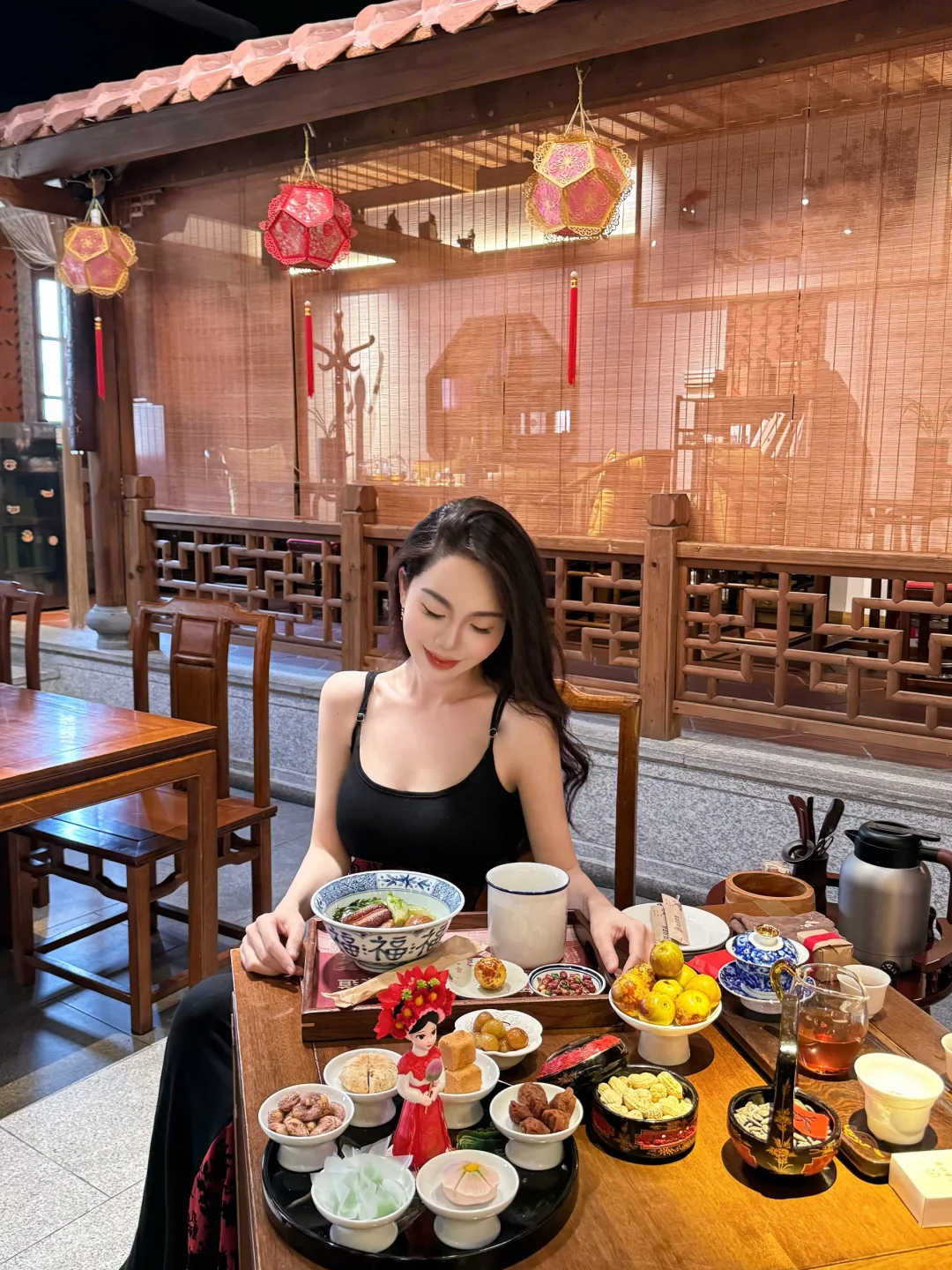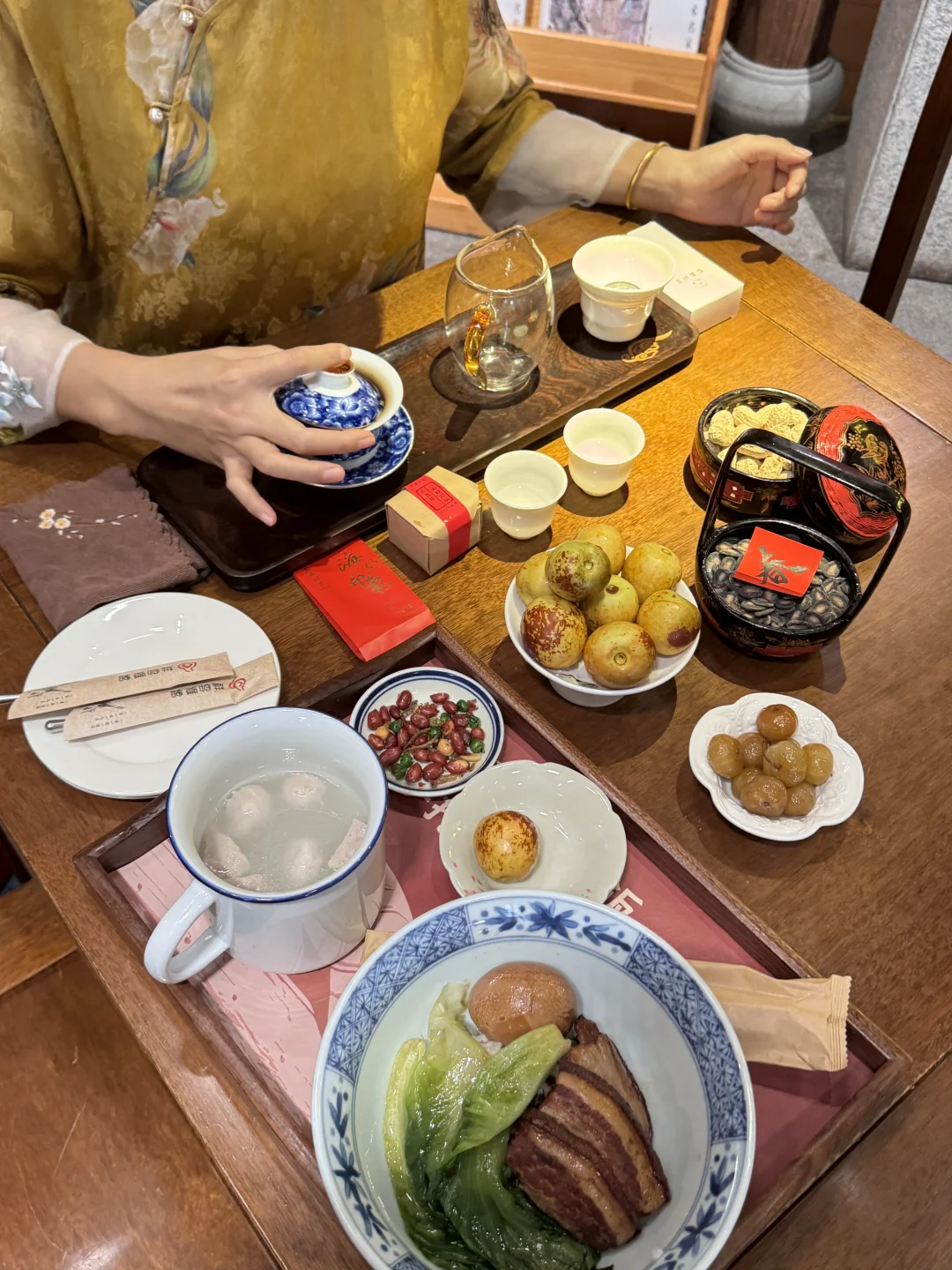 3.进馆有低消要求,不看表演只用餐,人均30➕就可以品尝到特别的闽南大碗饭,选择饮茶看表演人均100➕起,咱就是说光是看一个表演节目就不止100了,关键是它家的茶点和饭都非常的好吃,茶点很有闽南特色,我点的是簪花主题的茶点,可太好看了