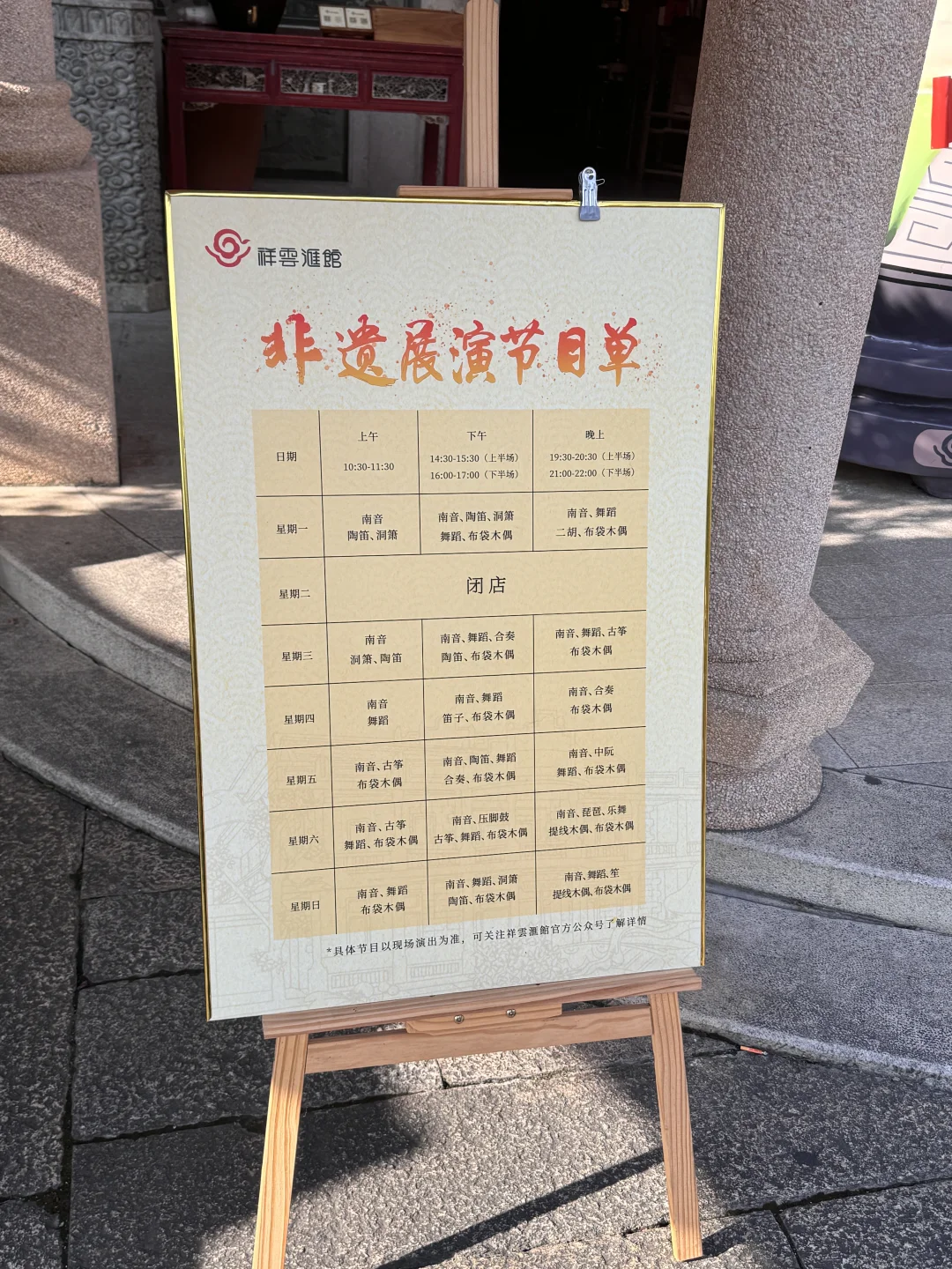 2.相比较大众茶馆而言,它家不仅可以喝茶还有非常多的非遗表演可以看,木偶戏,布袋戏,啜茶,南音等等,每天都有而且很多场次,节目单放P14,周二闭馆不要跑空哈,基本闽南特色非遗表演都能看到,而且都是非常专业的老师和演员表演