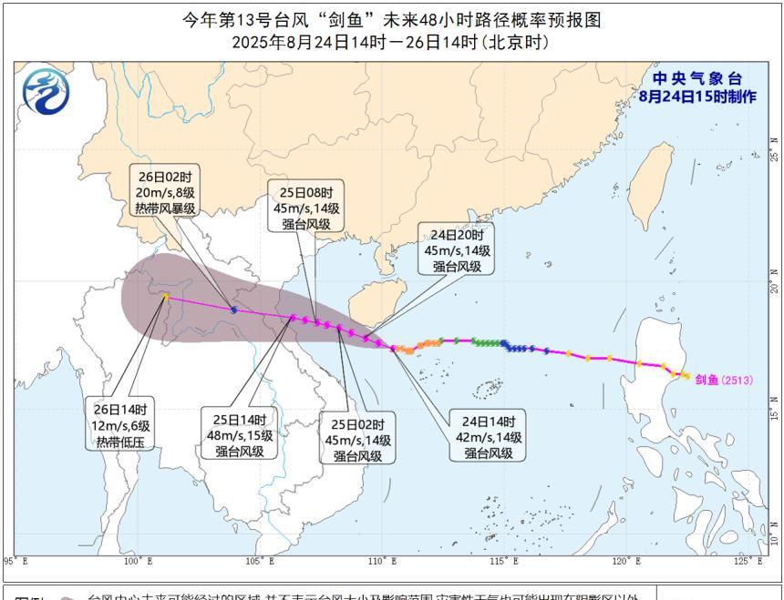 台风“剑鱼”已增强至14级,较大可能擦过三亚一带沿海!今天(24日)下午14时1