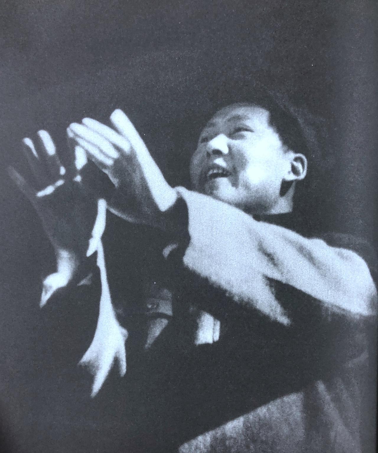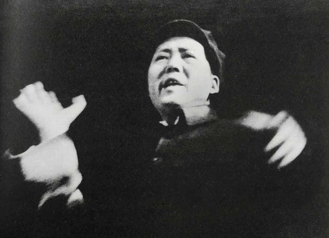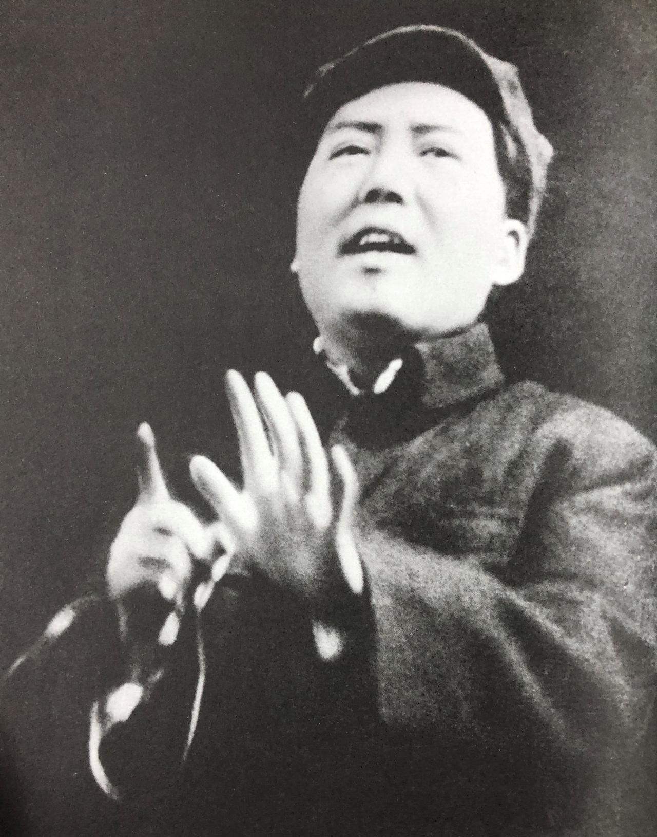 1943年11月29日毛泽东主席在中共中央陕甘宁边区招待陕甘宁边区劳动英雄模范生产者代表大会上作《组织起来》的演讲,吴印咸摄影