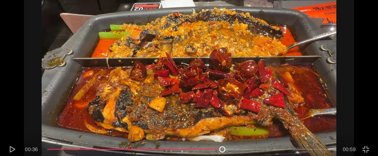 今天本来要去玄帝观玩,由于早上下雨,老婆有点不太舒服,就改变计划去了天津街溜达一圈后就直奔财富中心,因为前几天在街上无意中发现财富中心的大楼有伟大航路烤鱼的广告,就临时决定探店!财富中心的五六楼都是美食店,好多都不熟悉!找到六楼的烤鱼店就进去啦,点了和在长春这有山同样口味的烤鱼,双拼,蒜味和香辣味的清江鱼!我们中午十二点半多点到的,还有位置,在我们吃的过程中,还开始等位啦,可见这家连锁店在吉林还是很受欢迎的!烤鱼上来后,就开始品尝啦,感觉味道还不错,香辣味这边有点咸,与在长春这有山那里吃的还是有差距!那次在那里感觉非常棒,虽然都是连锁店,差别还是有的呀!做法都一样,但就没有那种最好吃的感觉!想想以前去披萨店喝酥皮蛤蜊汤也有这种感觉,有的连锁店就做的好,有的连锁店口味就差多啦! 财富中心美食品种非常多,以后慢慢品尝吧!