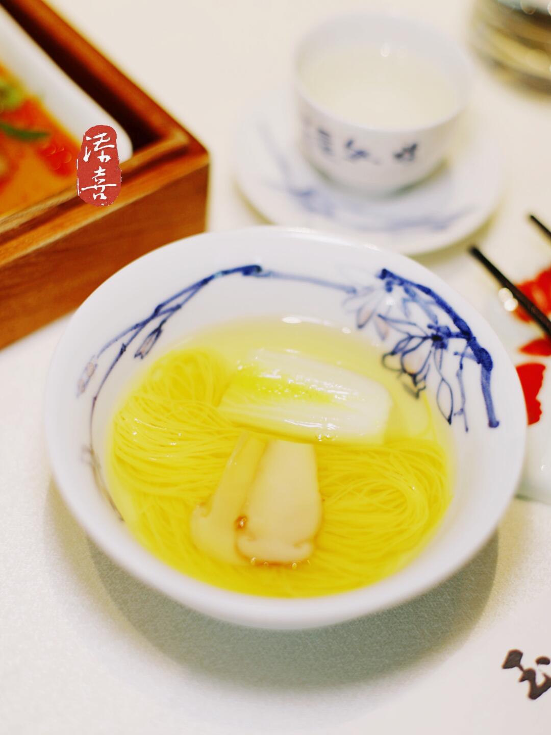 0.1毫米金丝面在松茸鸡汤中轻漾