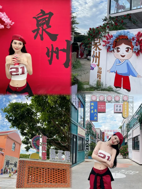 沿码头往前走几百米,在码头对面的位置,目前这个市集有点被闲置了,知道的人还不错,但是完全不影响它拍照超出片,这个地方绝对可以成为蟳埔村的地标打卡机位,比起村里人挤人,更推荐来这里拍!