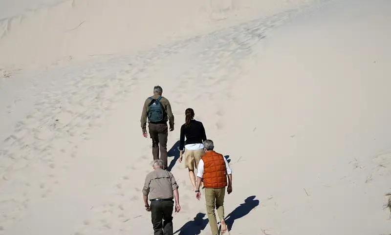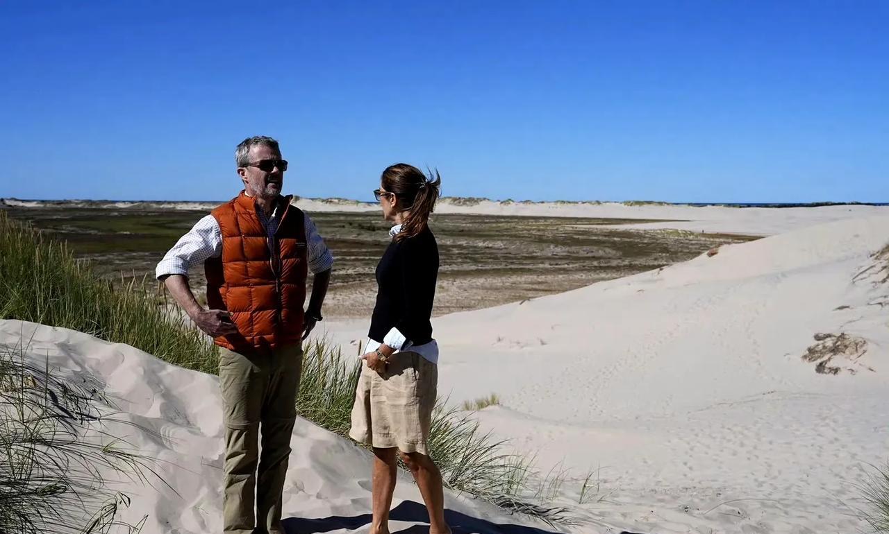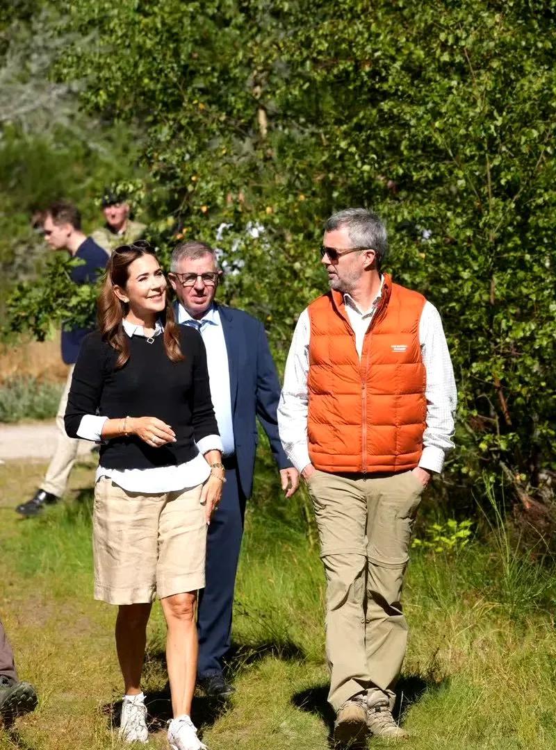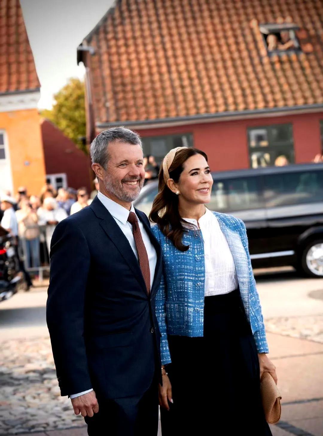 2025.8.25 丹麦国王夫妇继续今年的夏季航行,乘坐皇家游艇丹尼布罗格号抵达赛比,走上赛比街头,访问赛比教堂,爬拉比约格沙丘等地。
