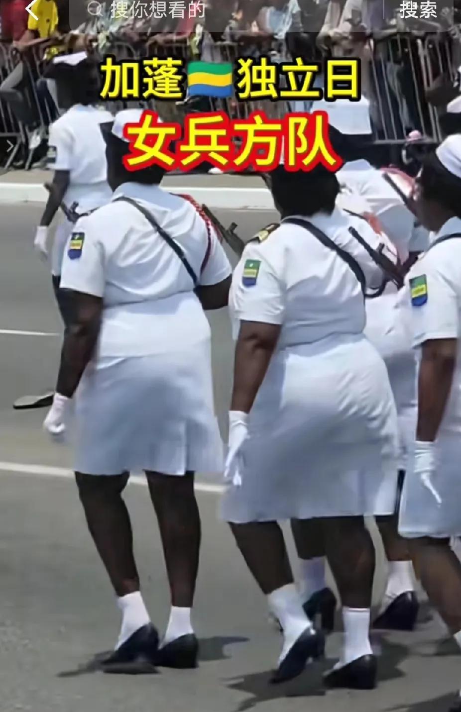 加蓬独立日阅兵式上,雄赳赳,气昂昂的加蓬女兵方队领队,阔步观礼台来走过,接受元首和人民的检阅。这气势压倒一切。