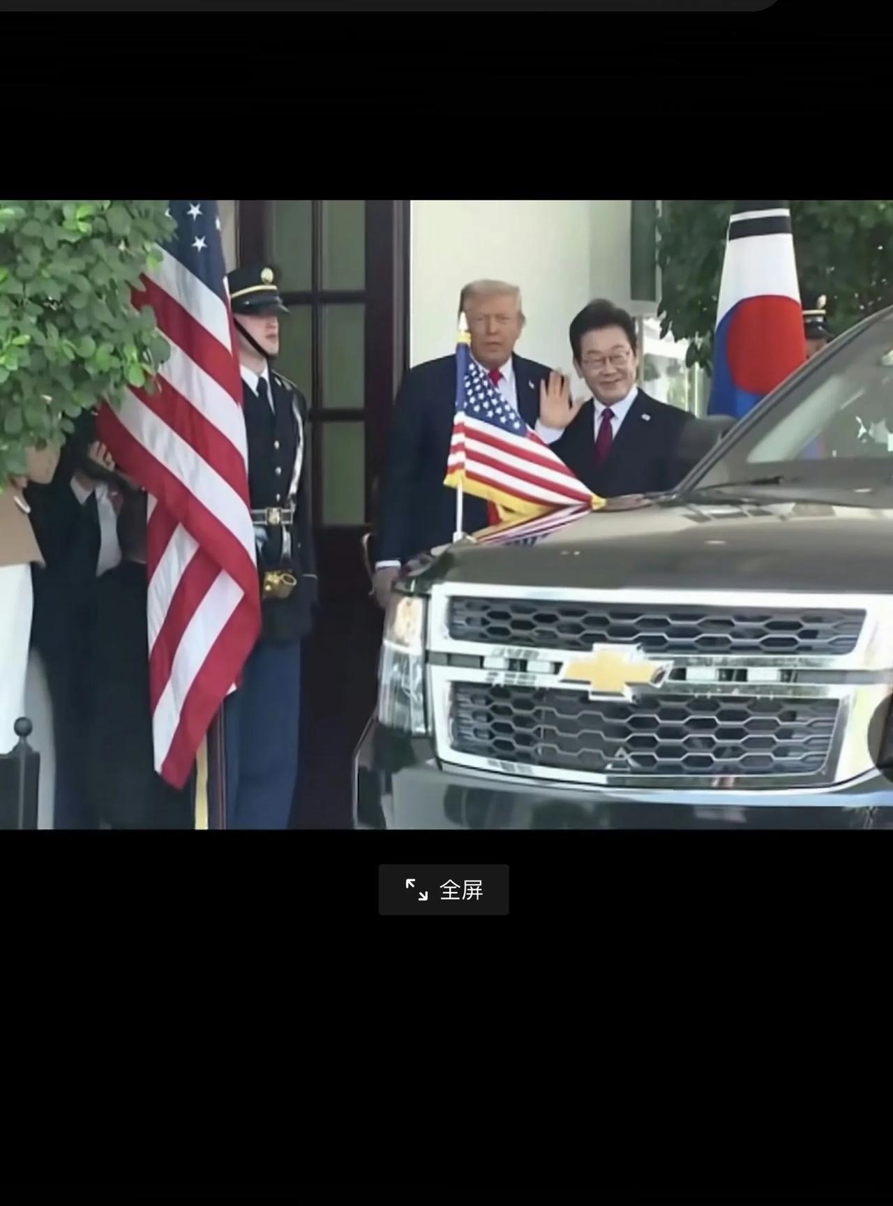 看看韩国总统李在明是怎样受到特朗普“待”见的: 1、门前没有铺红地毯。这是美国接待一国元首几乎没有出现过的情况。 2、特朗普没有在门前先行等候。当李在明乘坐的车辆到达会见门前后,特朗普没有提前在门前站着迎接,而是等车停稳由礼宾把车门打开,李在明已经下车后,特朗普才走出来与李在明握手,问候也只是简单的一句话。 上述两个细节表明:特朗普是在有意冷落李在明。