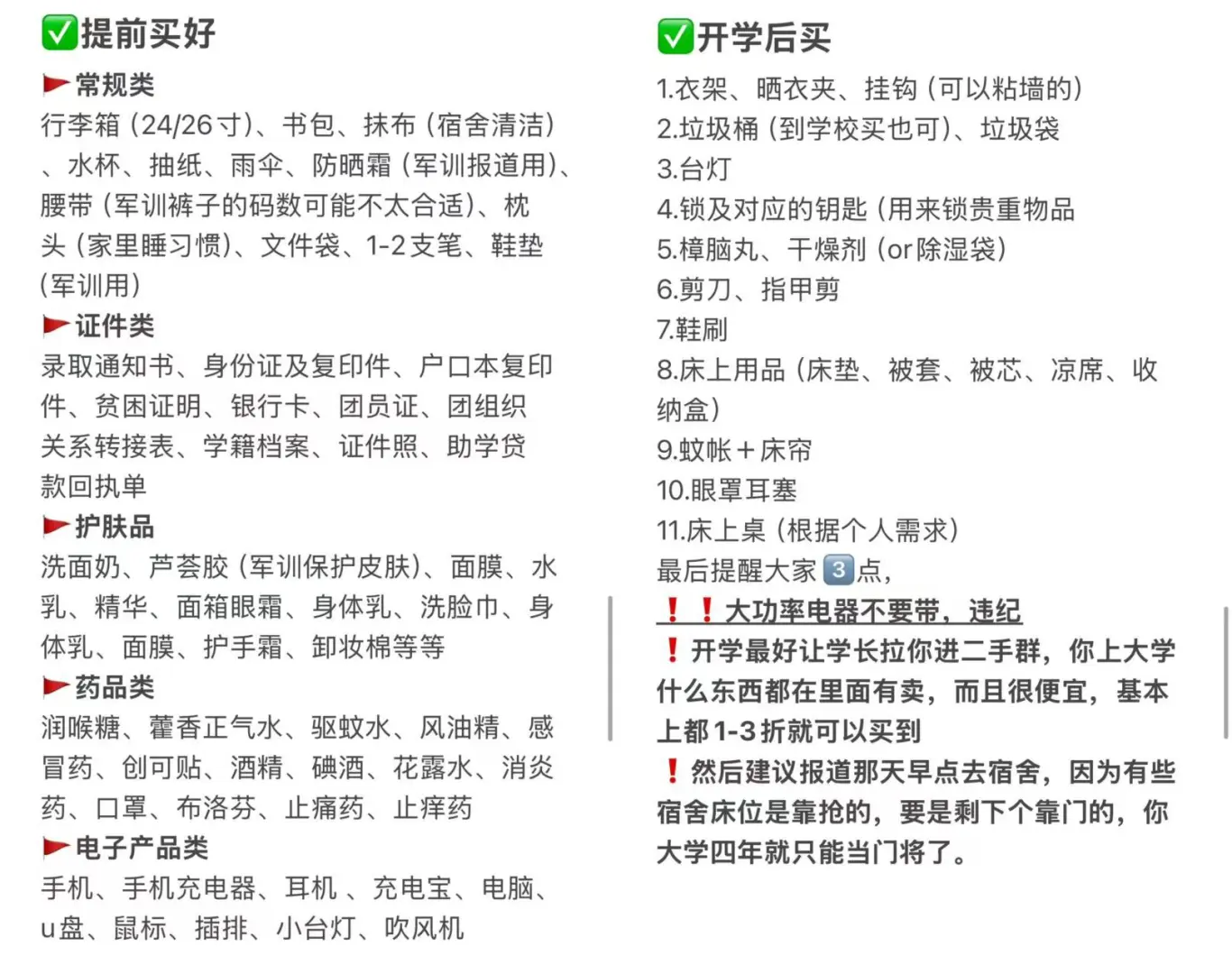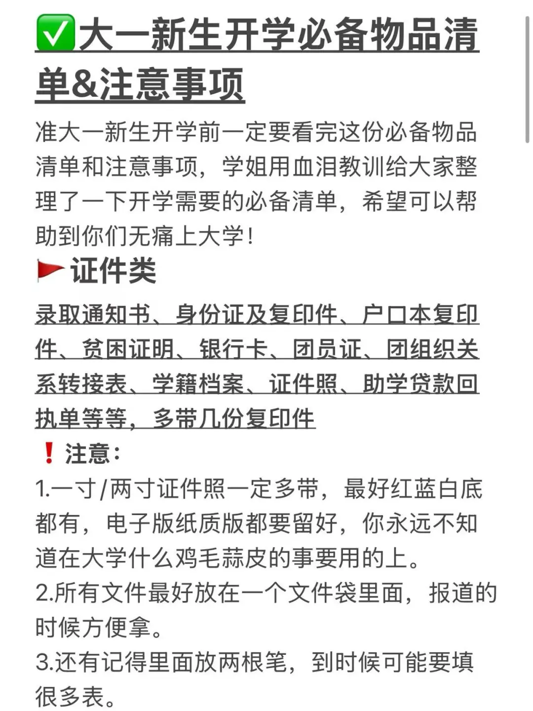 准大一新生开学前一定要看完这份必备物品清单和注意事项,学姐用血泪教训给大家整理了一下开学需要的必备清单,希望可以帮助到你们无痛上大学!