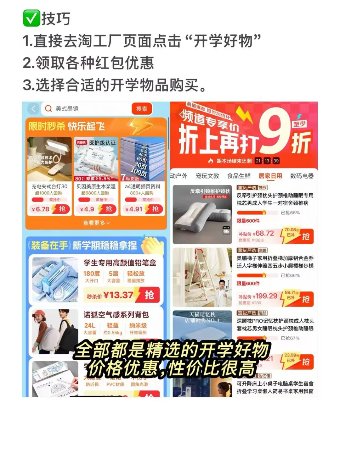 1.直接去淘工厂页面点击“开学好物”