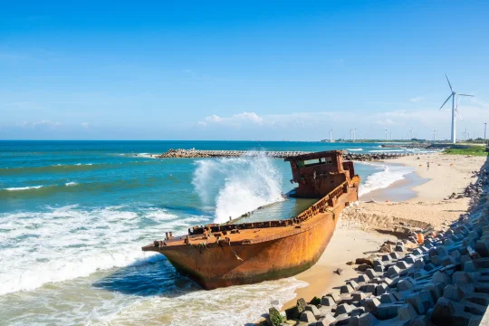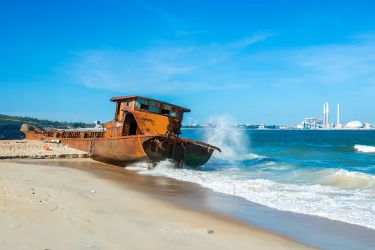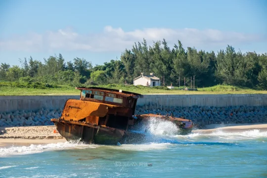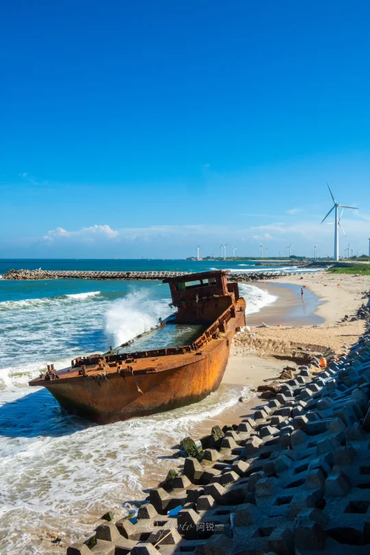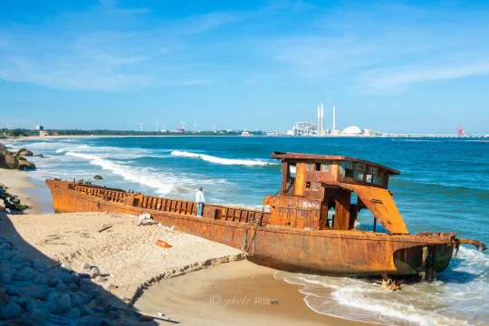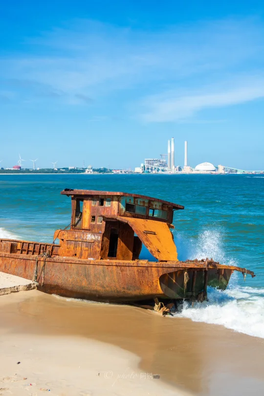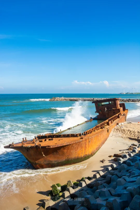跟着来找揭阳版布鲁威斯号啦 🚢 📍地点:揭阳惠来靖海绿洲东南侧(导航至靖海绿洲,到达后直走一公里左右,左边会有一条土路,往里直开即可到达海边),卫星地图放大其实可以看到 📸拍照∶船可以上去但是海浪很大建议在沙滩拍摄就可以 🚗交通:地点相对偏僻,建议自驾到达,海边注意车辆可能会陷入沙子里 ‼️注意:海边游玩注意人身安全,天热炎热做好防晒防暑,夏天的海边真的是超热的