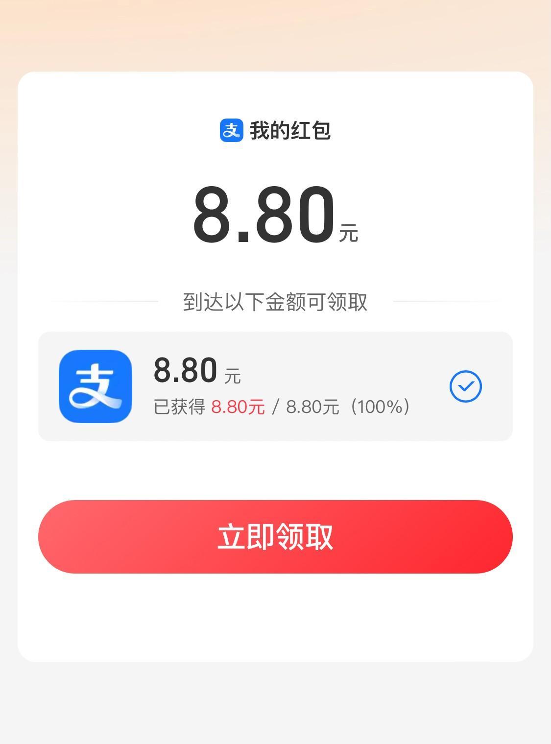 最近这段时间,支付宝“看视频领红包”还是非常给力的! 每天超市购物,菜市场买菜买水果啥的,总能节省个块儿八毛钱。 老百姓居家过日子,抠抠搜搜是常事! 这不,一个8.80元的特大红包妥妥当当到手了! 接到这个视频红包的时候,还是有些瞻前顾后的,就怕努力了好多天最后拿不到。 不过,毕竟8.80元红包的诱惑力十足。 前天开始用心看视频,直到成了每圈0.01,并且圈圈转速超级慢的时候,想着放弃得了! 今天中午休息的时候,又打开支付宝视频,看了一会儿发现每圈居然奇迹般的成了0.03元,一鼓作气,完成了这个大红包看视频过程! 邻居李姨平时没事的时候,也喜欢上了看支付宝视频领红包,今年一个夏天领了不少红包呢! #家长里短那些事#